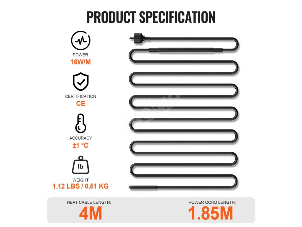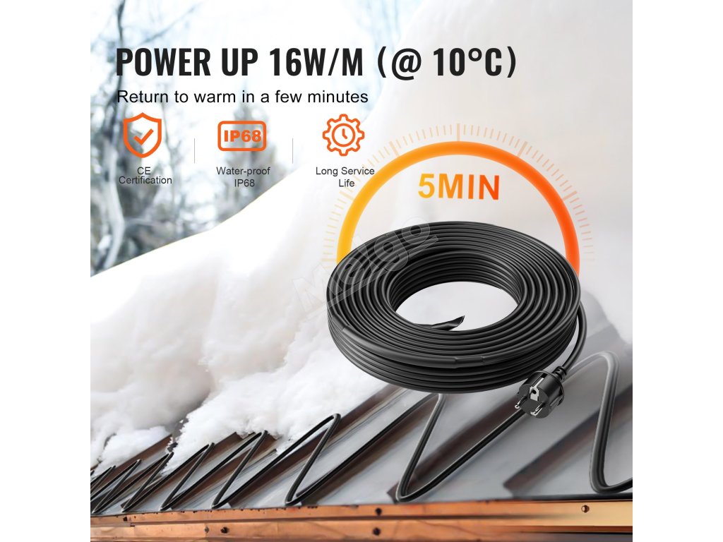 Ak vás trápia ničivé ľadové zátarasy na streche alebo chcete v zime udržať prúdenie vody - náš elektrický kábel na ohrev vodovodného potrubia je to, čo potrebujete! Strešný vyhrievací kábel VEVOR 4 m 16 W/m so samoregulačnou technológiou dokáže automaticky upravovať svoju teplotu v závislosti od prostredia.