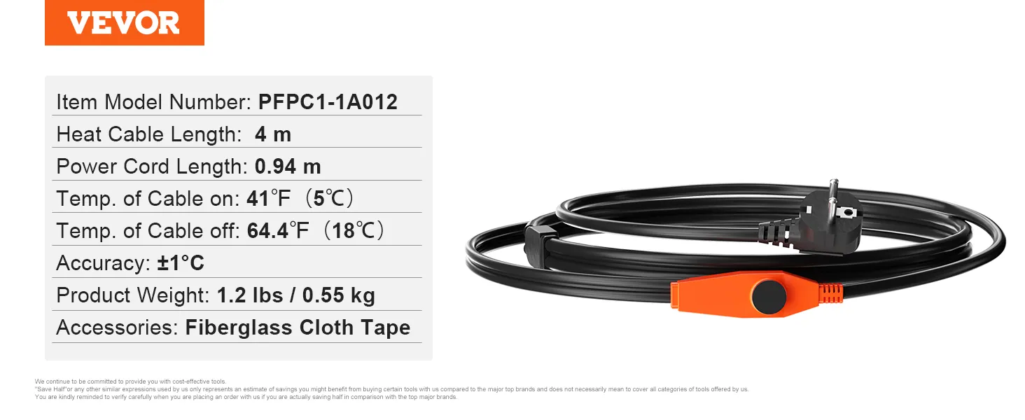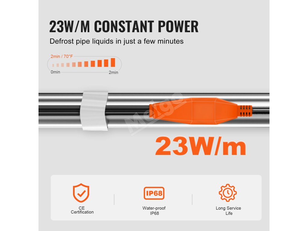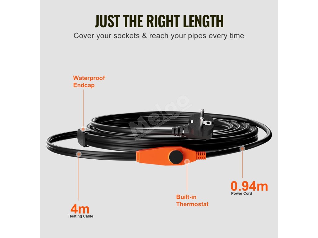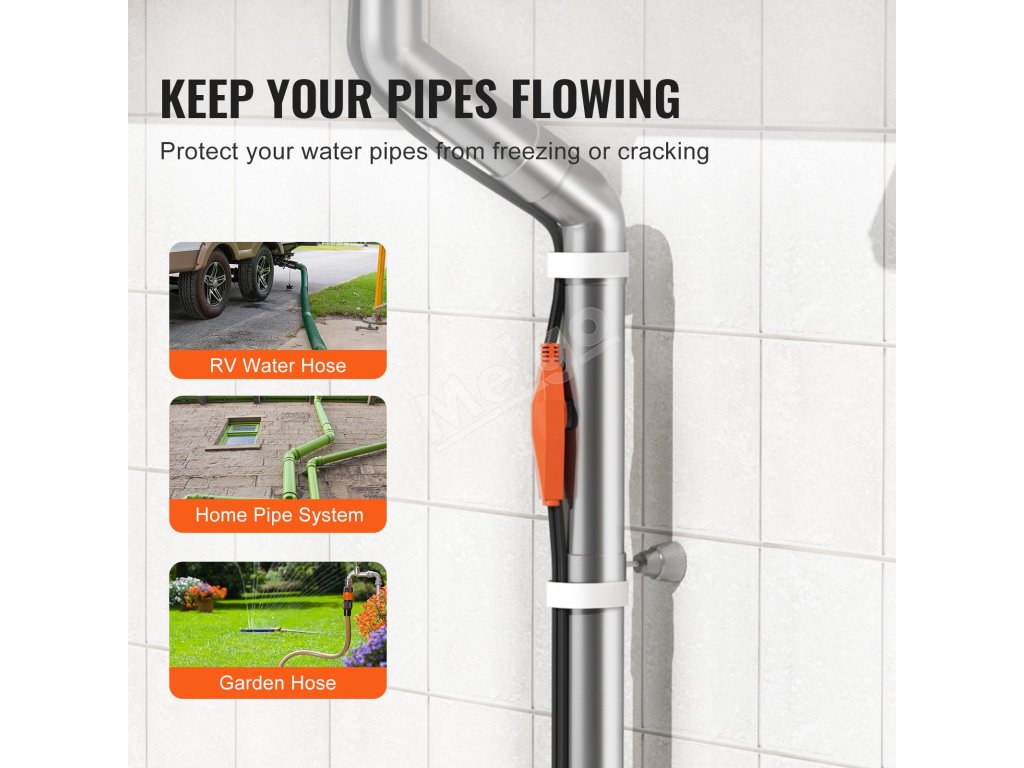 Ak staviate obytný automobil v mrazivom podnebí alebo chcete, aby voda vo vodovodnom potrubí v dome alebo na záhrade tiekla bez prerušenia? Náš 4m kábel na ohrev vodovodného potrubia s konštantným výkonom 23 W/m a zabudovaným termostatom je ideálnou voľbou, ktorá účinne zabráni zamrznutiu vodovodného potrubia.