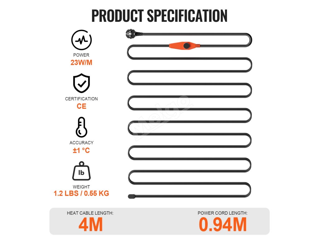 | Dĺžka tepelného kábla | 4 m / 13 stôp |