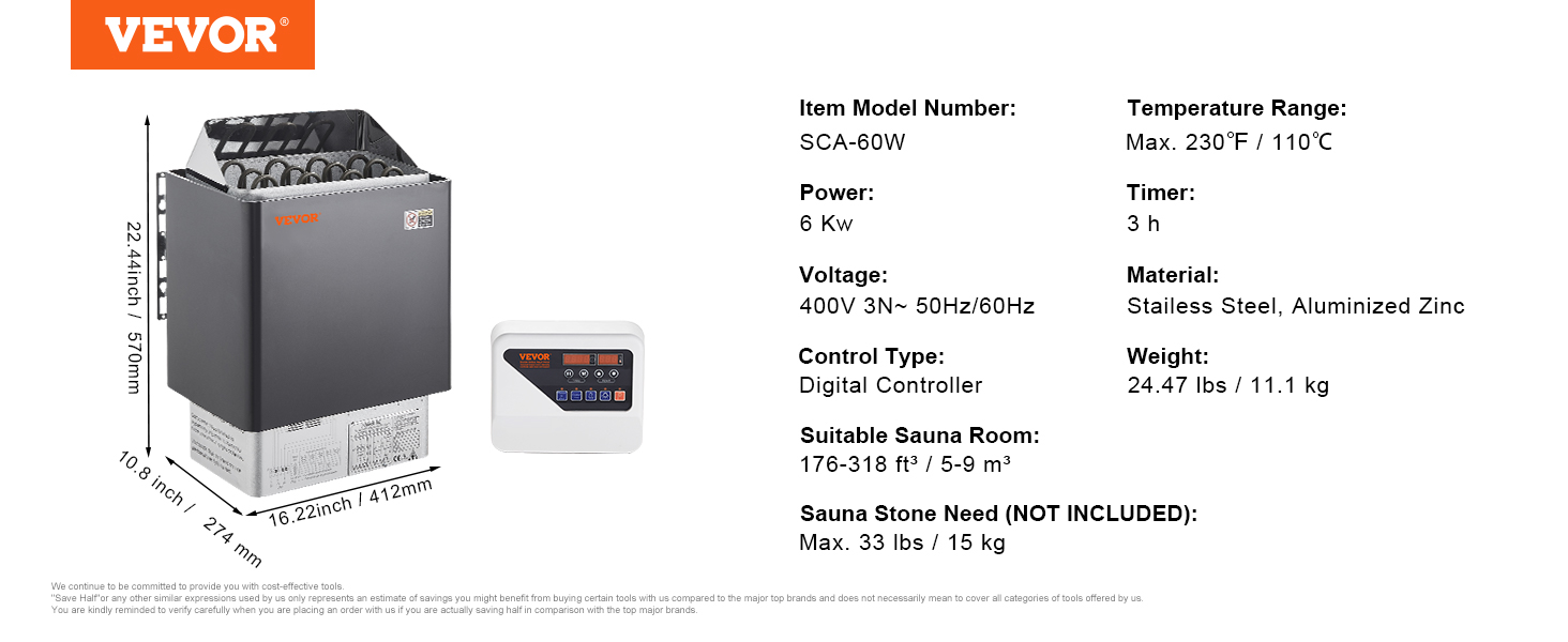 | Vhodná saunová miestnosť | 177-318 ft³ / 5-9m³ |