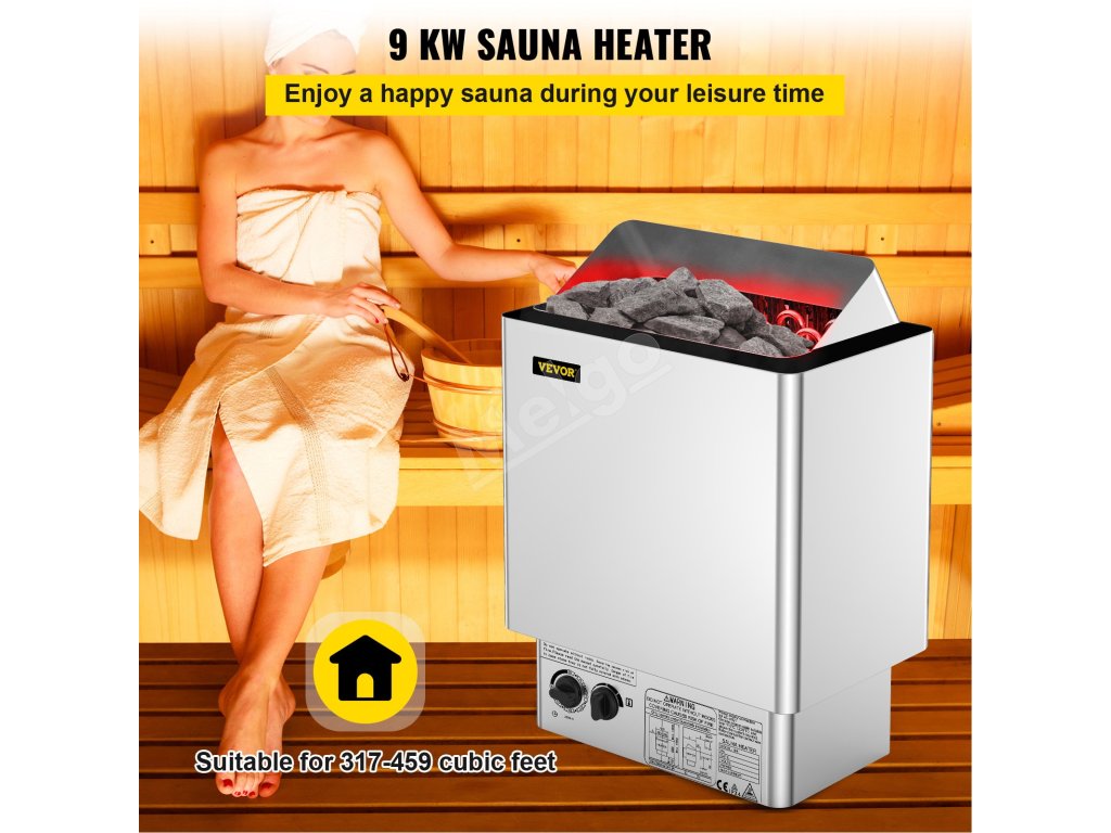 - Vhodná miestnosť pre saunu: 317-459 kubických stôp/ 9-13 m³ (výška 6,2 stôp/ 190 cm)
