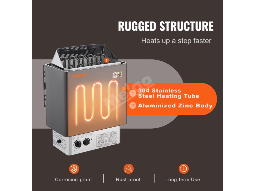 Vnútorné saunové ohrievače sú vyrobené z vysokokvalitných materiálov, navrhnuté tak, aby poskytovali rýchle vyhrievanie, čo vám umožní vychutnať si saunovanie bez dlhšieho čakania.