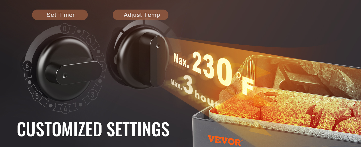 S maximálnou teplotou 230 ℉ a maximálnym časovým nastavením 3 hodiny poskytuje saunové kúrenie flexibilitu a kontrolu nad vaším zážitkom zo saunovania.