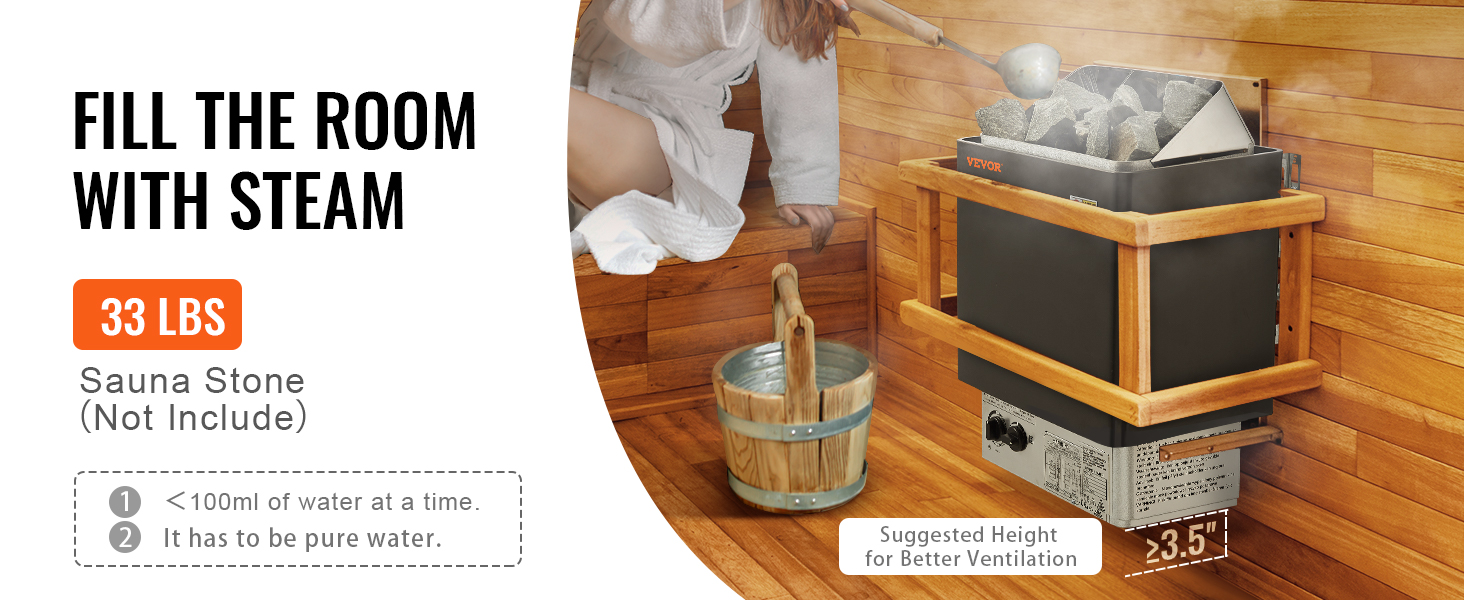 | Potrebný saunový kameň (NIE JE V CENE) | Max. 33 lbs / 15 kg |