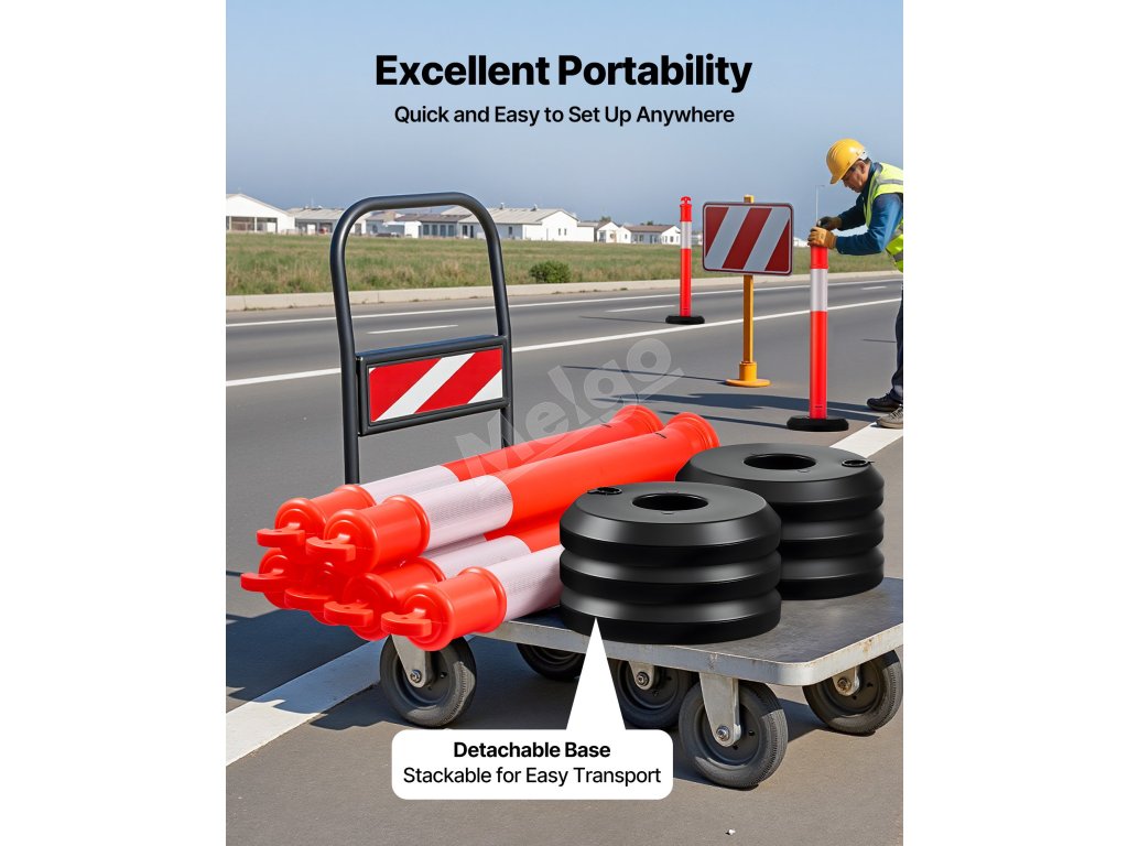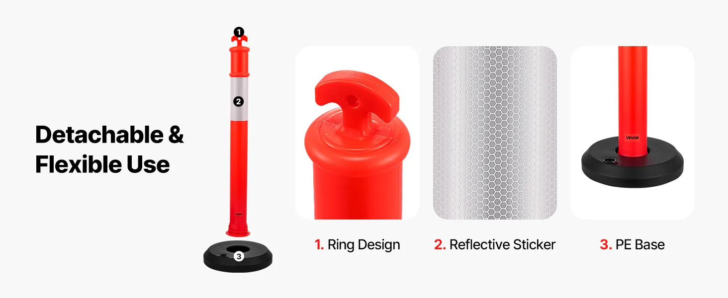 Vymedzovacie stĺpiky sa vyznačujú jasnými farbami a dizajnom s 360° reflexnými pásikmi, ktoré zaisťujú zvýšenú bezpečnosť pri nočných výstrahách na cestách. Jeho odnímateľná konštrukcia umožňuje jednoduché uskladnenie v zásahových vozidlách alebo pri veľkokapacitnej preprave, vďaka čomu je v prípade potreby ľahko dostupný.