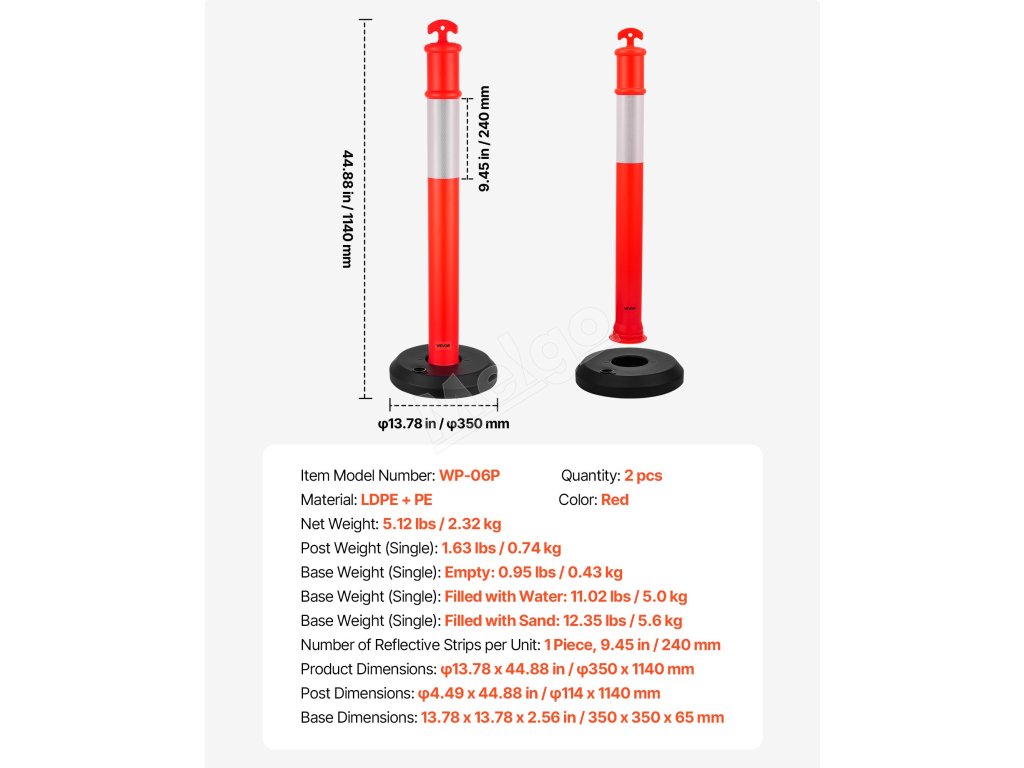 Deliace stĺpiky 1140 mm, 2 ks, s plniteľnou základňou, červené