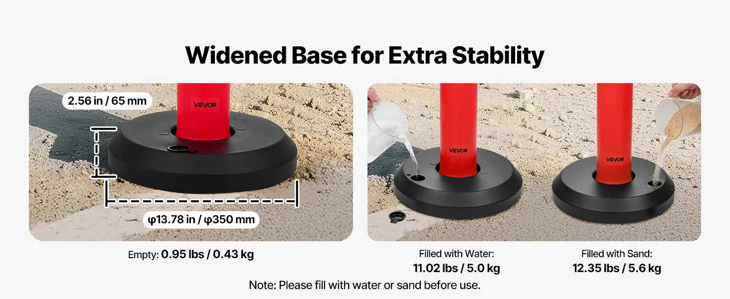 | Hmotnosť základne (jednotlivo) | Naplnená pieskom |