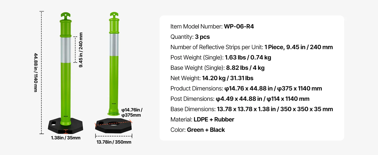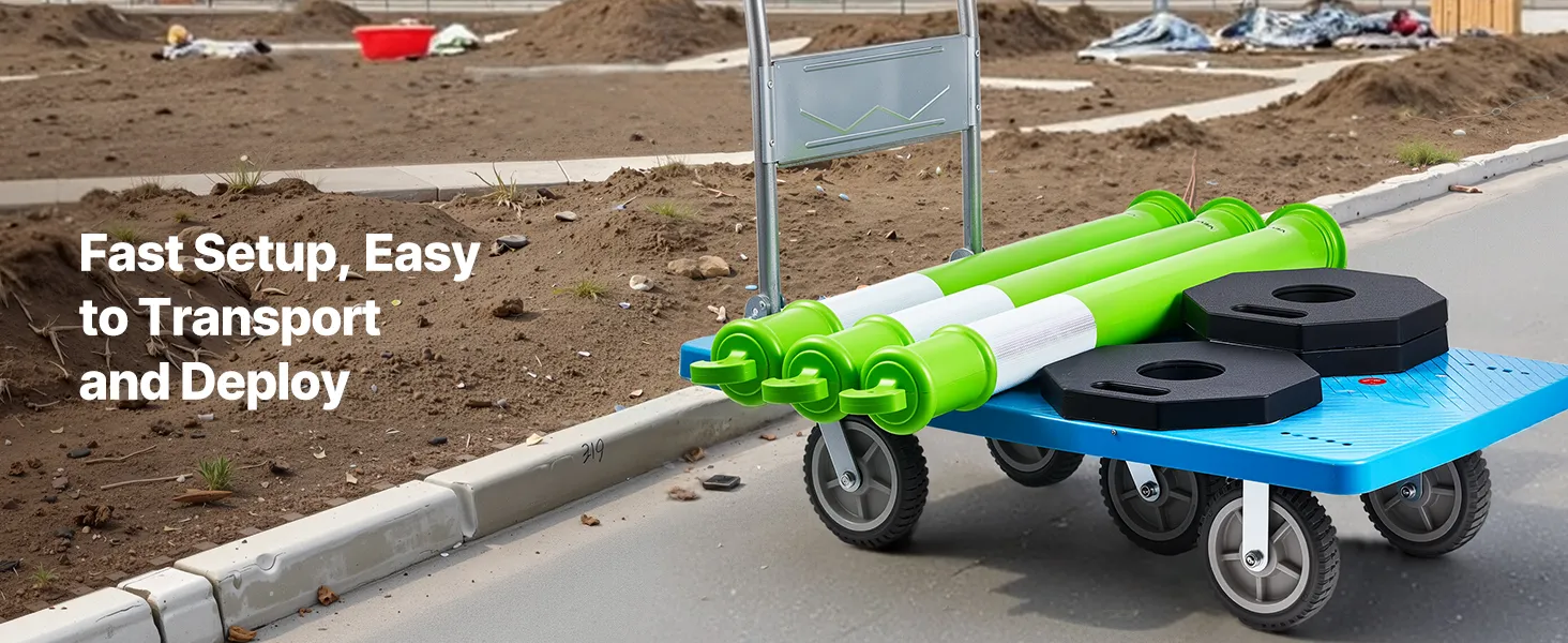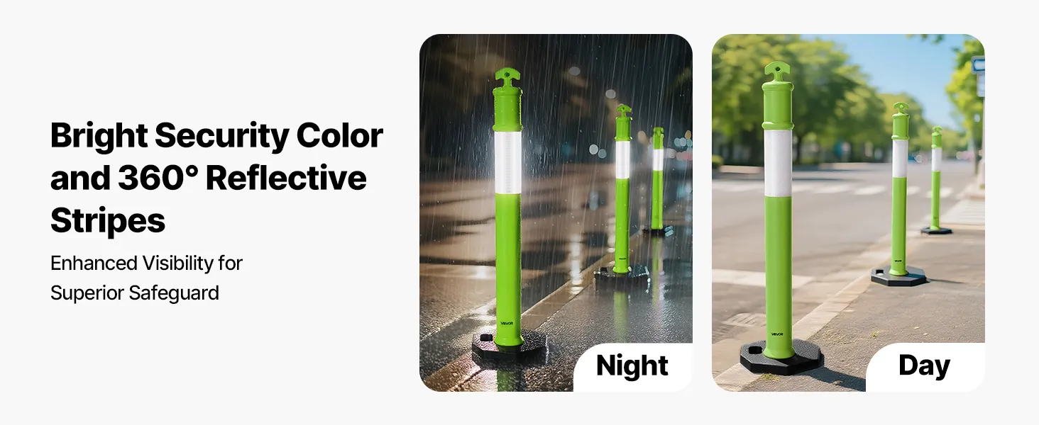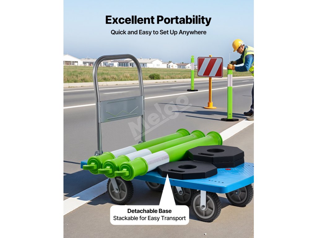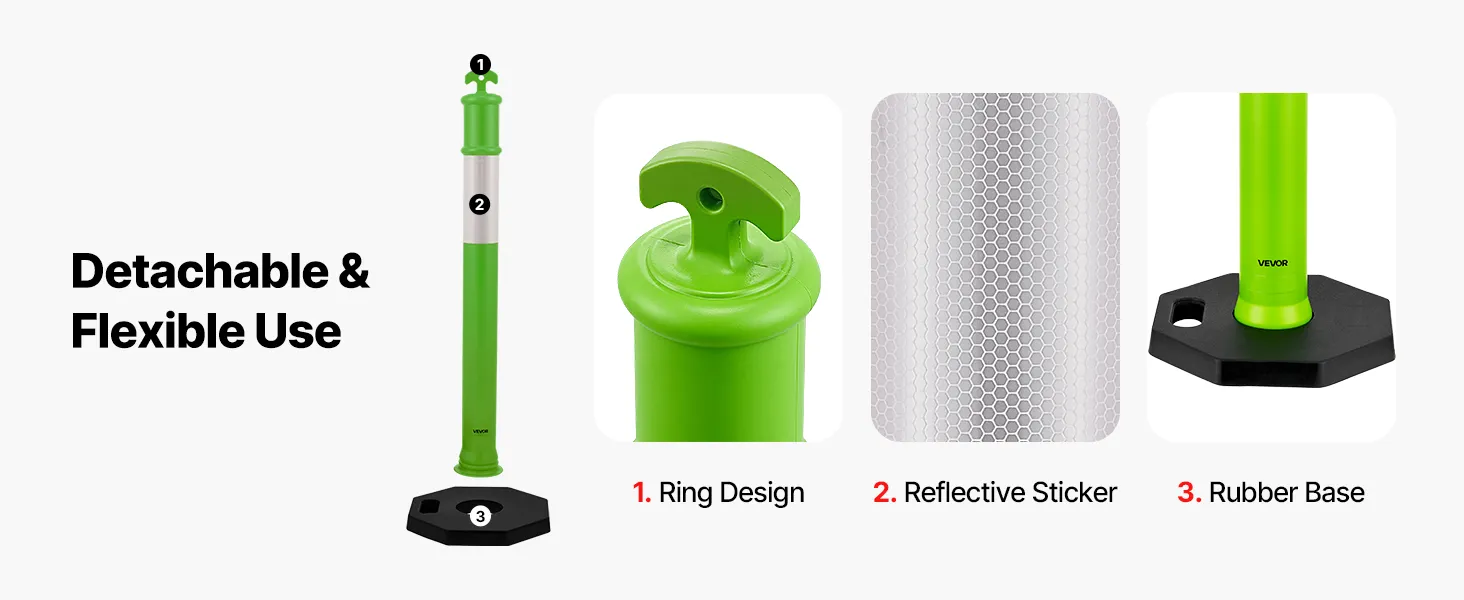 Vymedzovacie stĺpiky majú jasné farby a 360° reflexné pásy, ktoré zaisťujú zvýšenú bezpečnosť pri nočných výstrahách na cestách. Jeho odnímateľná konštrukcia umožňuje jednoduché uskladnenie v zásahových vozidlách alebo pri veľkokapacitnej preprave, vďaka čomu je v prípade potreby ľahko dostupný.