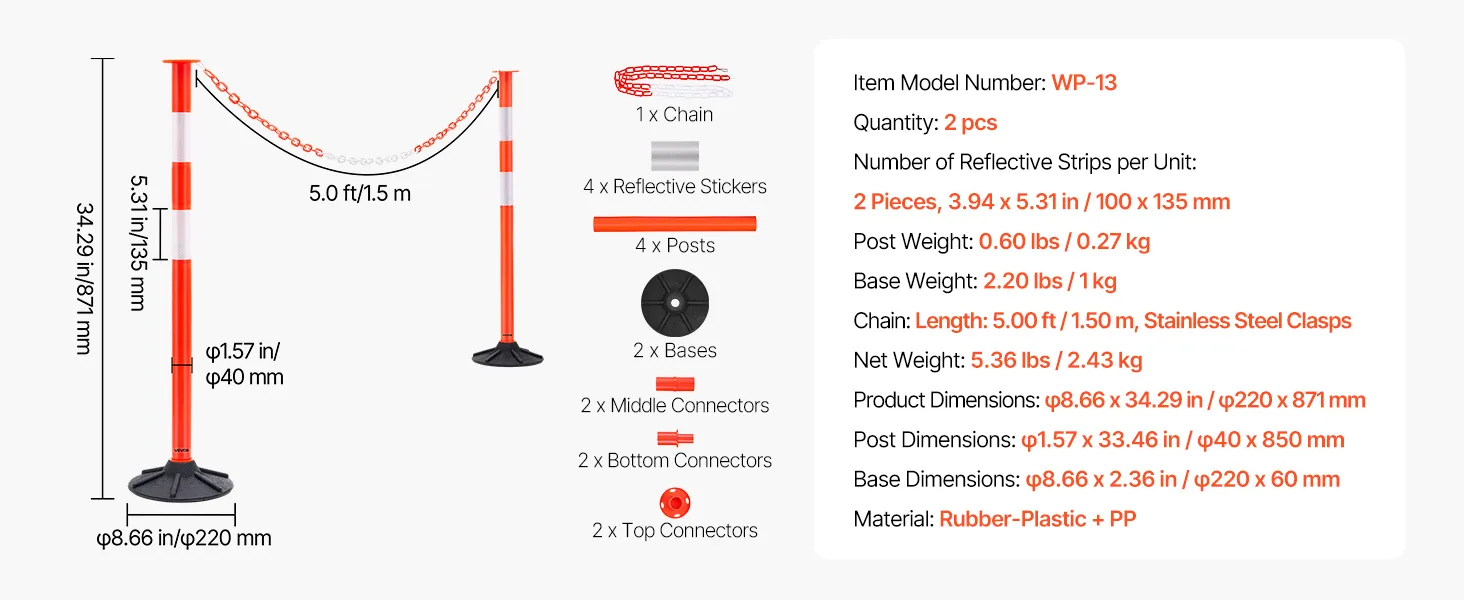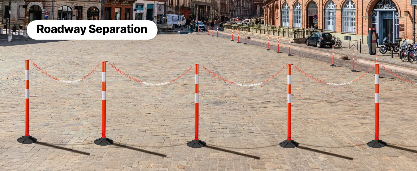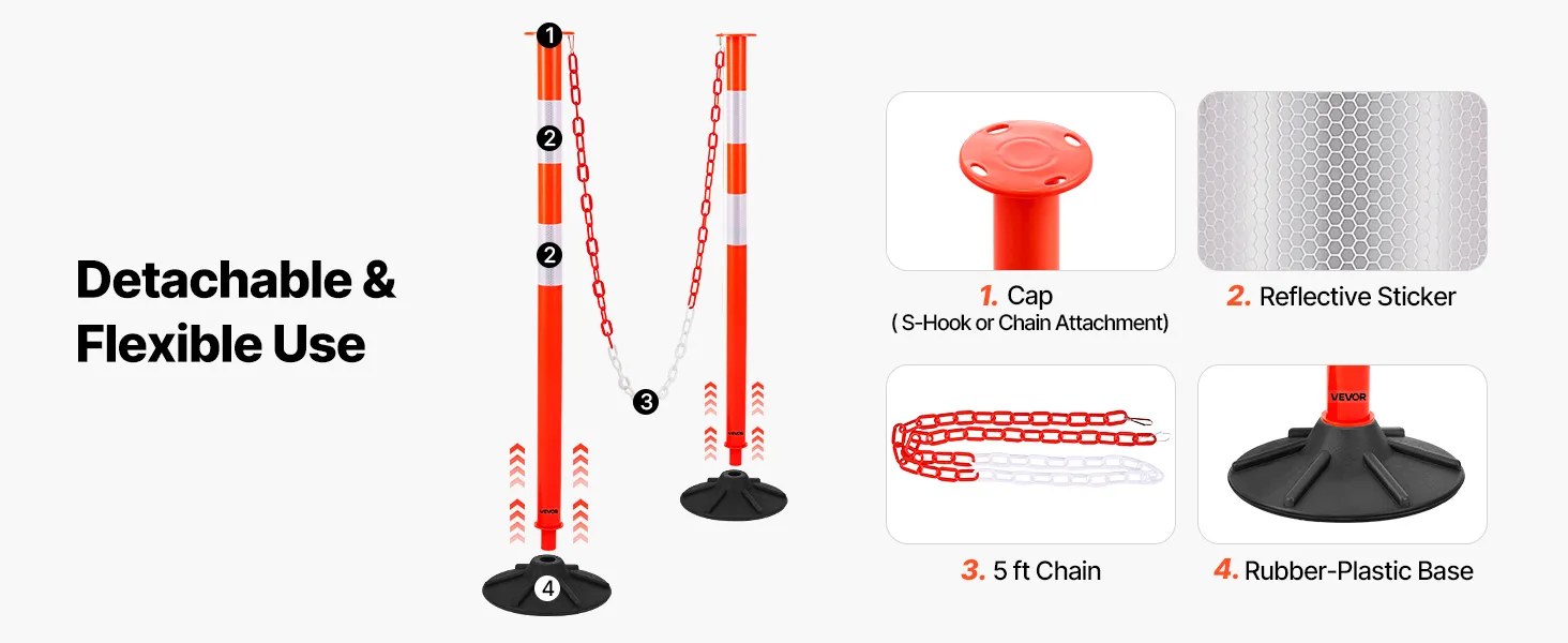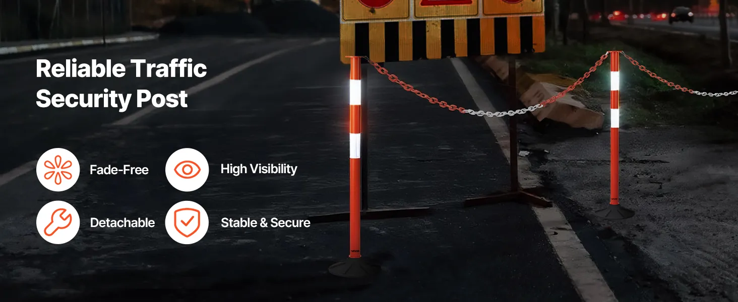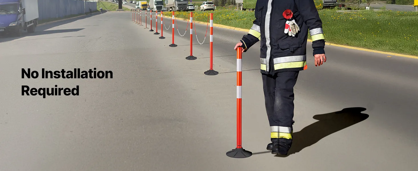 Vymedzovacie stĺpiky sa vyznačujú jasnými farbami a dizajnom s 360° reflexnými pásikmi, ktoré zaisťujú zvýšenú bezpečnosť pri nočných výstrahách na cestách. Jeho odnímateľná konštrukcia umožňuje jednoduché uskladnenie v zásahových vozidlách alebo pri veľkokapacitnej preprave, vďaka čomu je v prípade potreby ľahko dostupný.