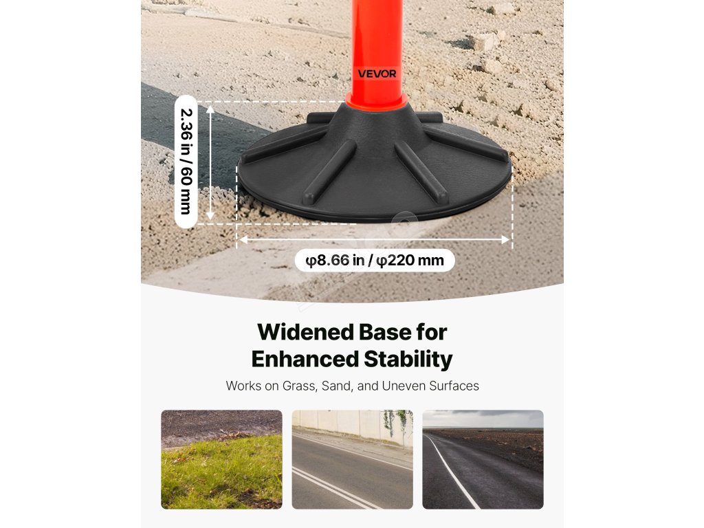 Vymedzovacie stĺpiky sa vyznačujú jasnými farbami a dizajnom s 360° reflexnými pásikmi, ktoré zaisťujú zvýšenú bezpečnosť pri nočných výstrahách na cestách. Jeho odnímateľná konštrukcia umožňuje jednoduché uskladnenie v zásahových vozidlách alebo pri veľkokapacitnej preprave, vďaka čomu je v prípade potreby ľahko dostupný.