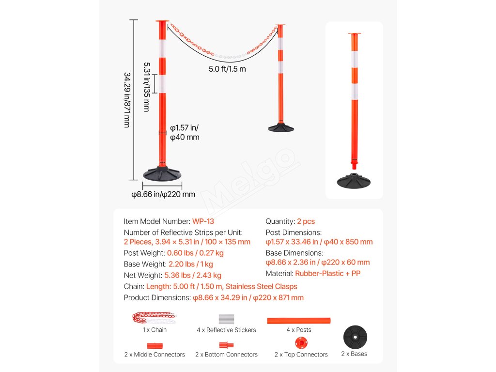 2 balenia dopravných vymedzovacích stĺpikov so zaťaženou základňou a reťazami