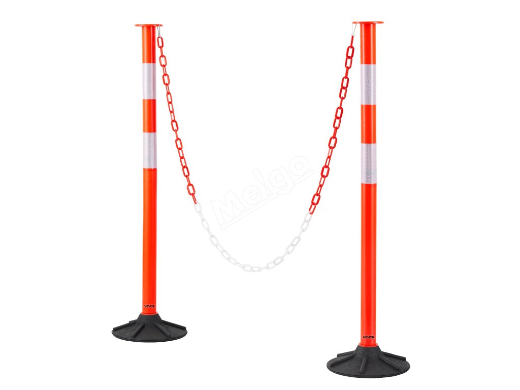 Usmerňovacie stĺpiky 2 ks 871 mm s tiaženou základňou, reflexné, reťaz