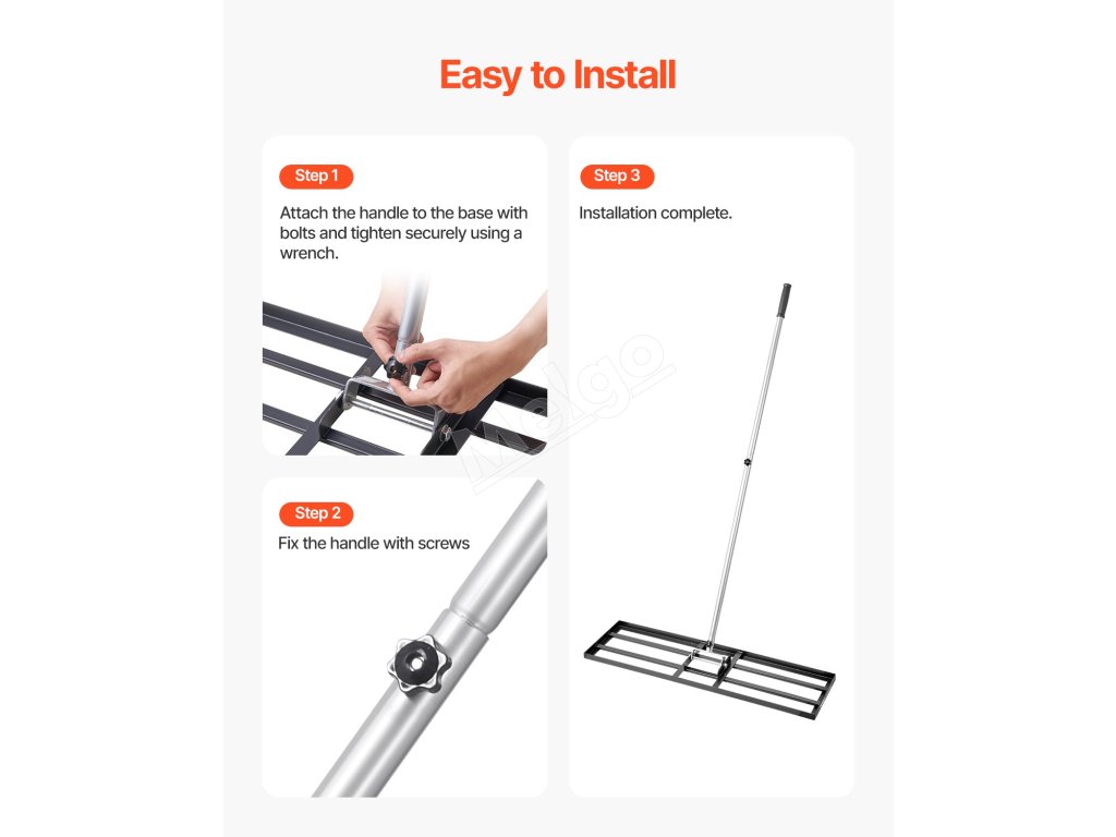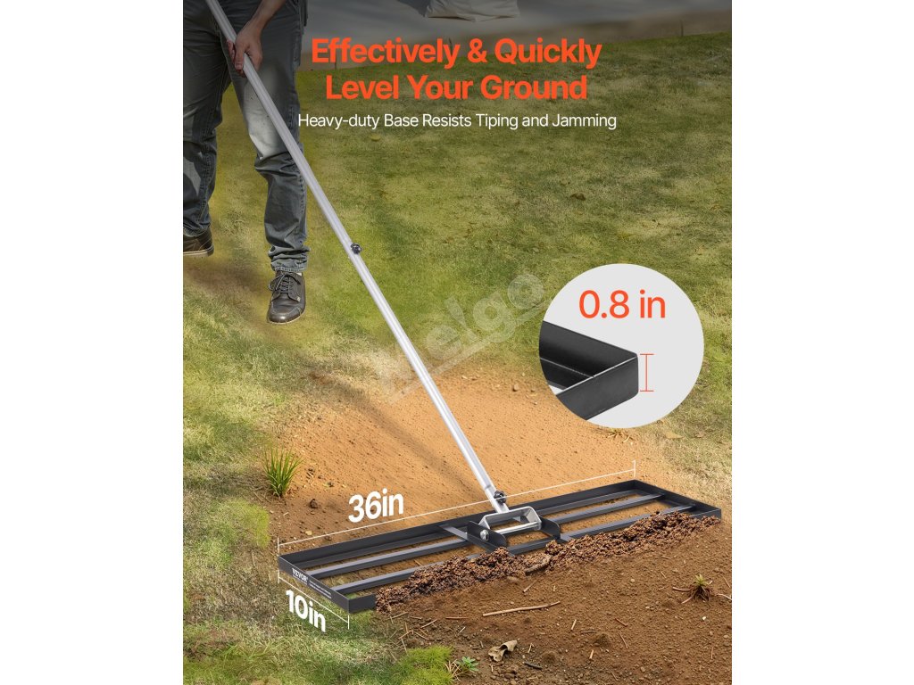 Naše ťažkotonážne hrabličky na vyrovnávanie trávnika so širokou zemnou doskou účinne vyrovnávajú pôdu. Tvrdá uhlíková oceľ s povrchom odolným proti korózii a pevným zváraním na dlhý čas vonku. Rukoväť otočná o 180° s gumovou objímkou na pohodlné uchopenie. Ideálne na farmy, záhrady, golfové ihriská.