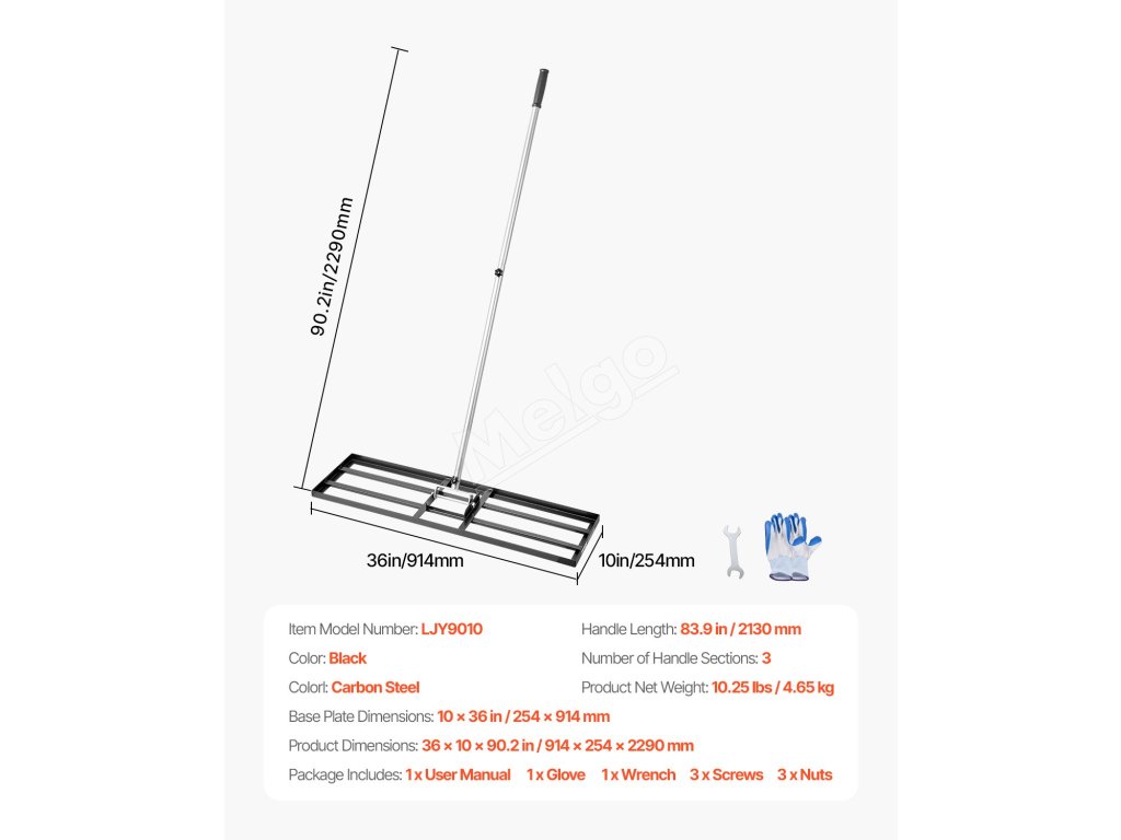 Hráble na vyrovnávanie trávnika, rúčka 83.9 in, doska 36×10in, 3 výšky