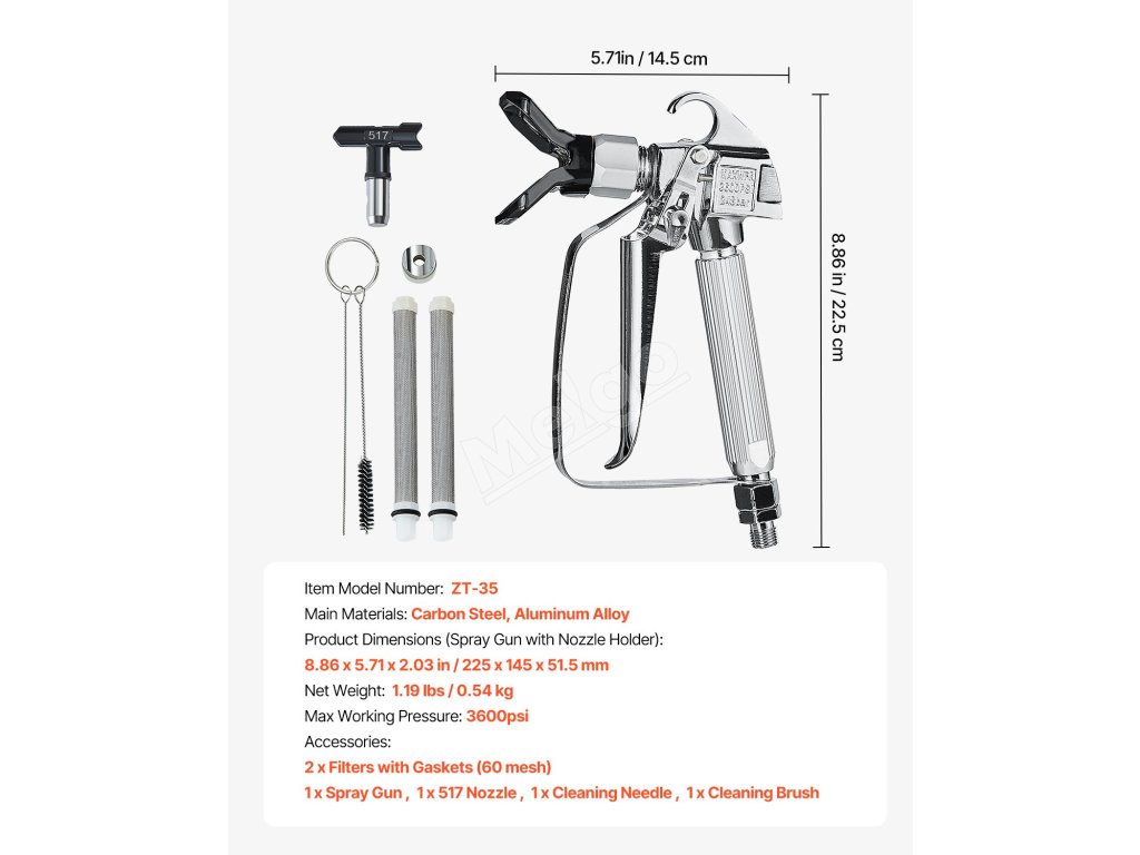 Airless striekacia pištoľ 3600 psi, tryska 517, otočný kĺb s filtrom
