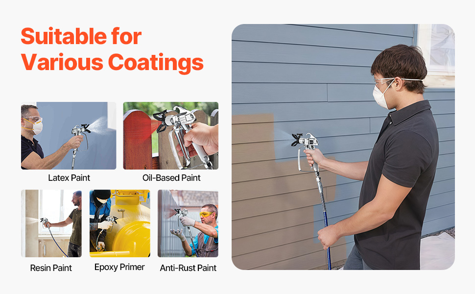 Táto bezvzduchová striekacia pištoľ je vhodná na rôzne typy farieb, možno ju používať v rôznych aplikáciách, čím sa eliminuje potreba častej výmeny zariadenia a uspokojujú sa rôznorodé potreby používateľov.