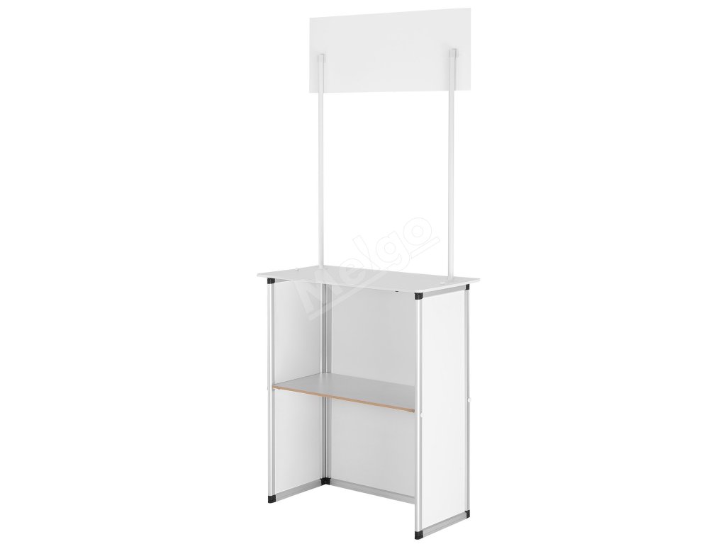 Tento výstavný pult je vybavený vysokokvalitnou tabuľou z PVC na elegantné zobrazovanie plagátov. Na hornej polici unesie až 65 kg a na strednej polici 40 kg a je tu dostatok miesta na všetky vaše dobroty. Ťažký alebo ľahký, stojí pevne.