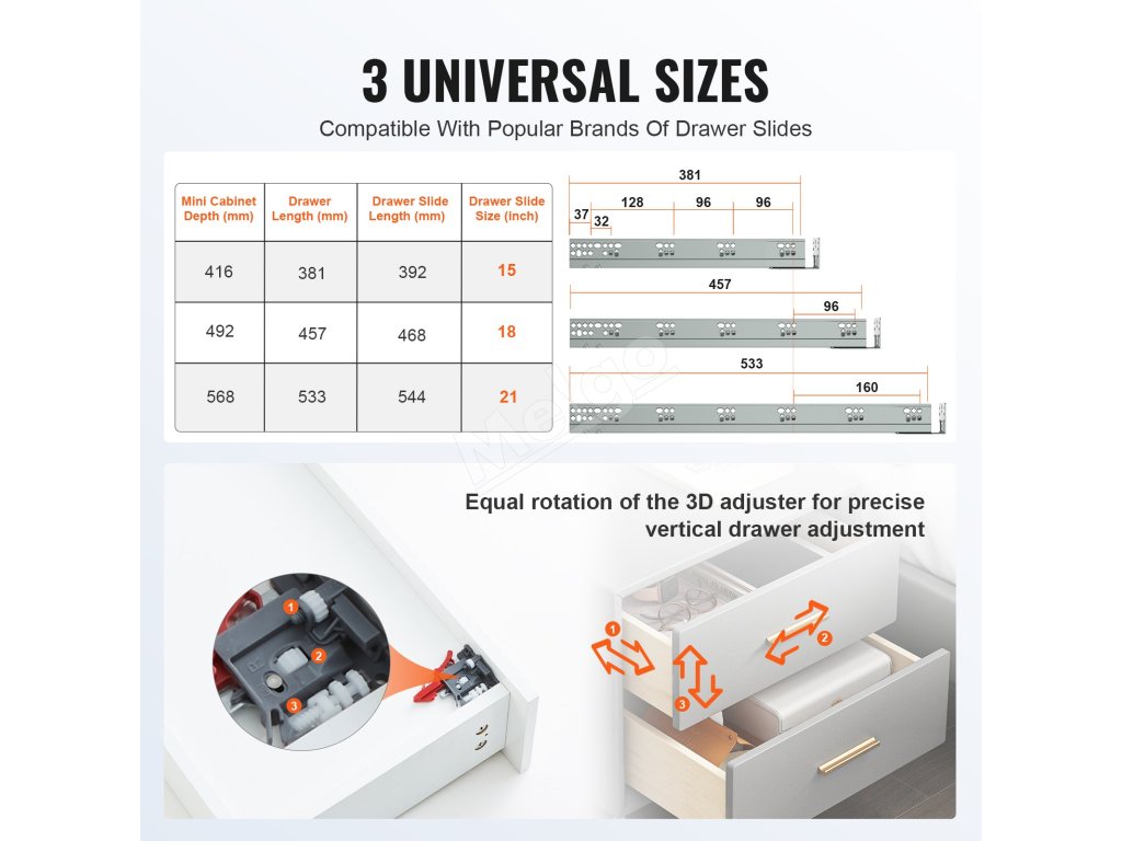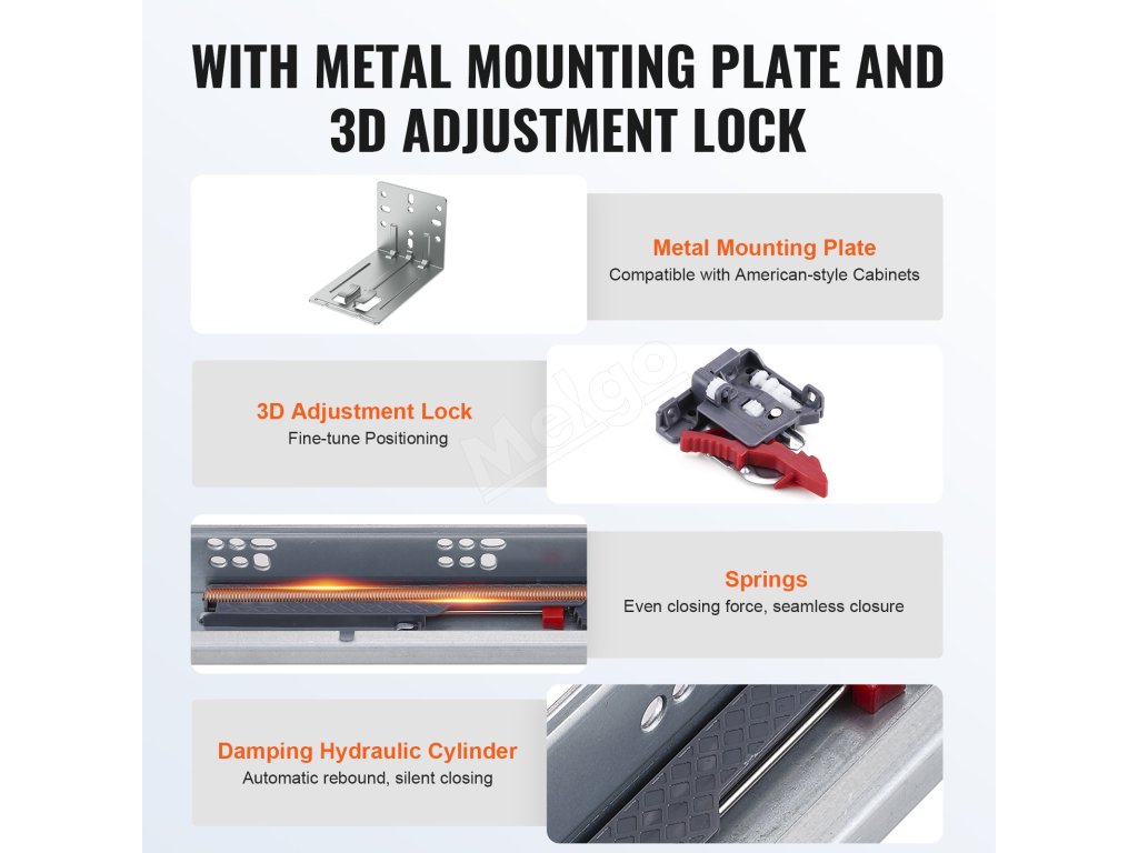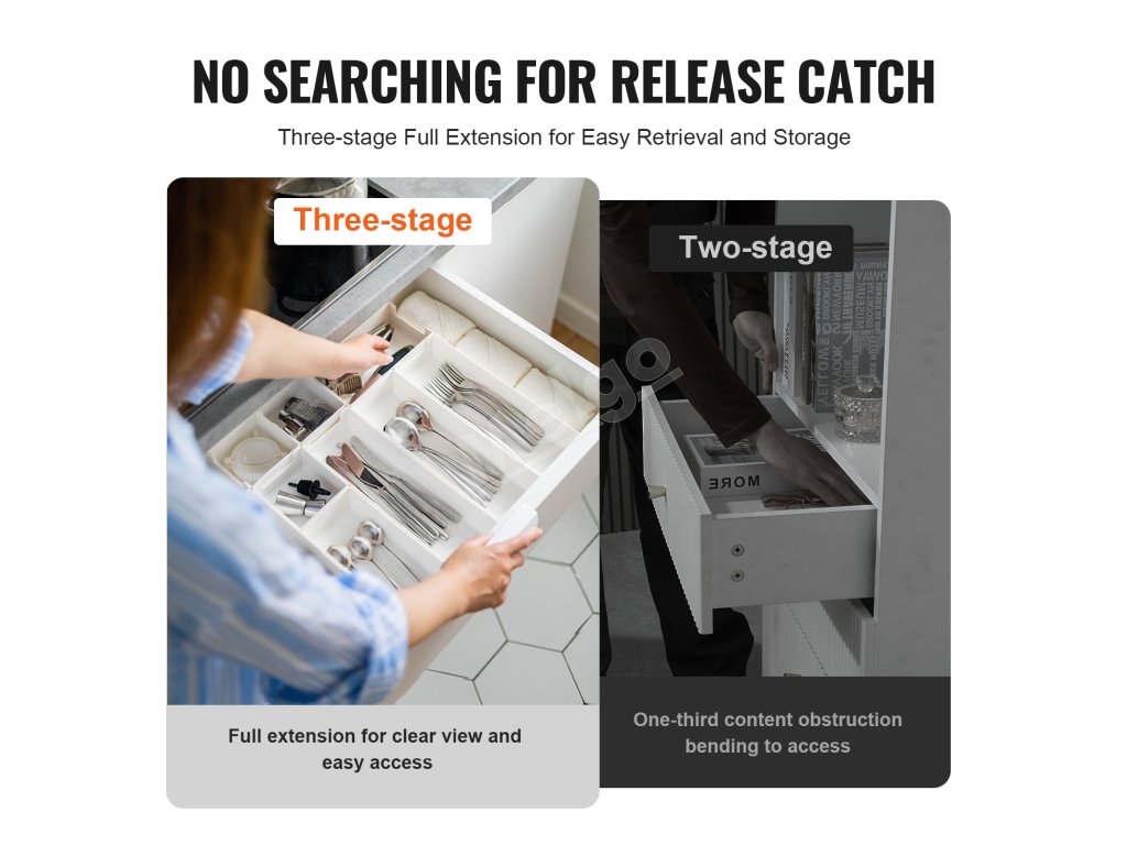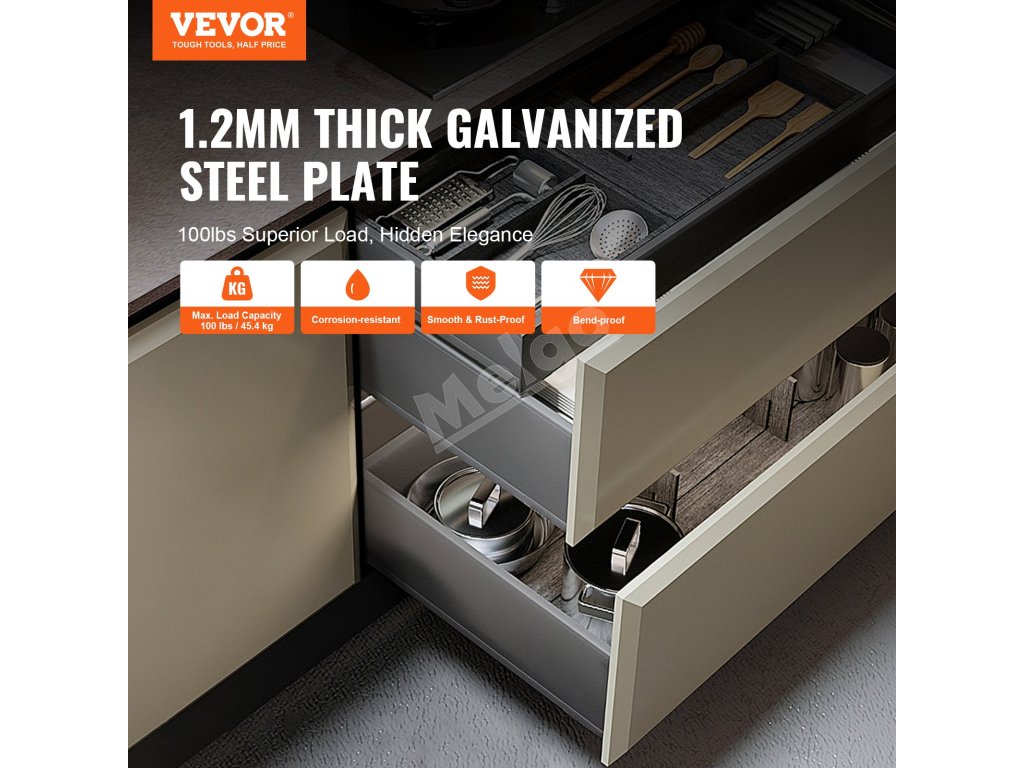 Naše zásuvkové výsuvy ponúkajú výnimočnú nosnosť 100 libier pre bezstarostné skladovanie. Sú vybavené zosilnenou pozinkovanou oceľou, tichým jemným zatváraním, trojstupňovým plným výsuvom a automatickým odskokom, čím poskytujú dokonalú kombináciu vynikajúcej kvality a jednoduchého používania.