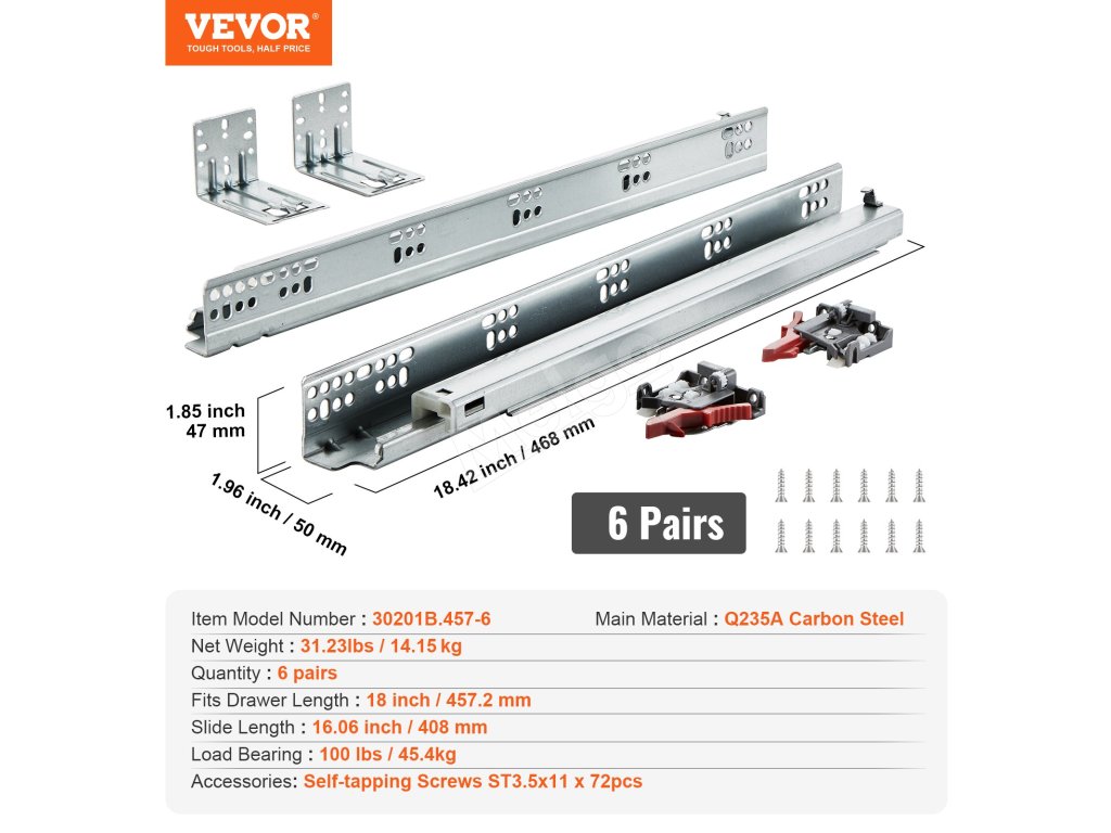 Bočné lišty zásuvky 6 párov 457.2 mm, tichý dojazd, zámok, 100 lbs