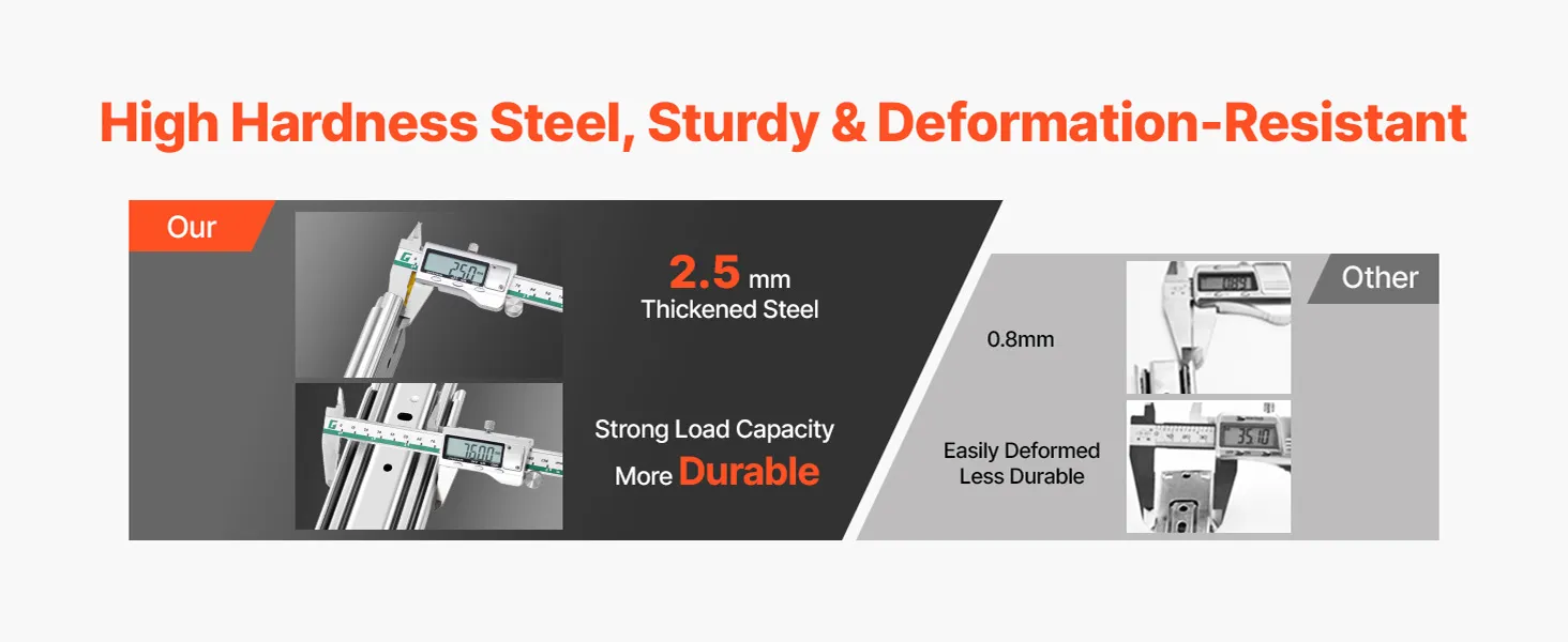 Vďaka nosnosti 500 libier je tento zásuvkový výsuv vyrobený z vysokokvalitnej ocele, je odolný voči korózii a korózii a je skonštruovaný tak, aby vydržal, čím spĺňa všetky vaše potreby týkajúce sa nosnosti.