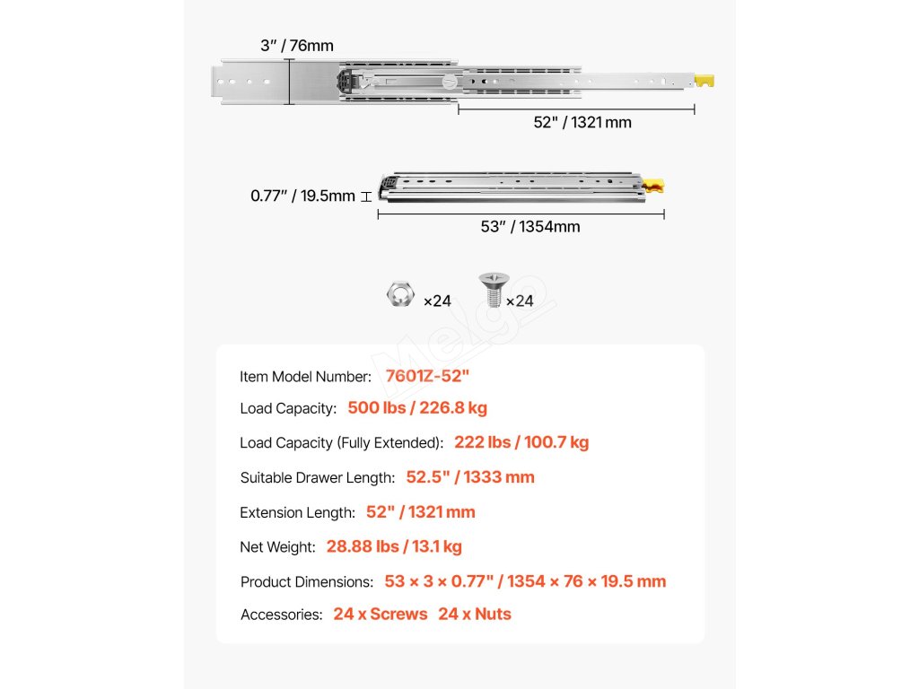 | Dĺžka výsuvu | 52" / 1321 mm |