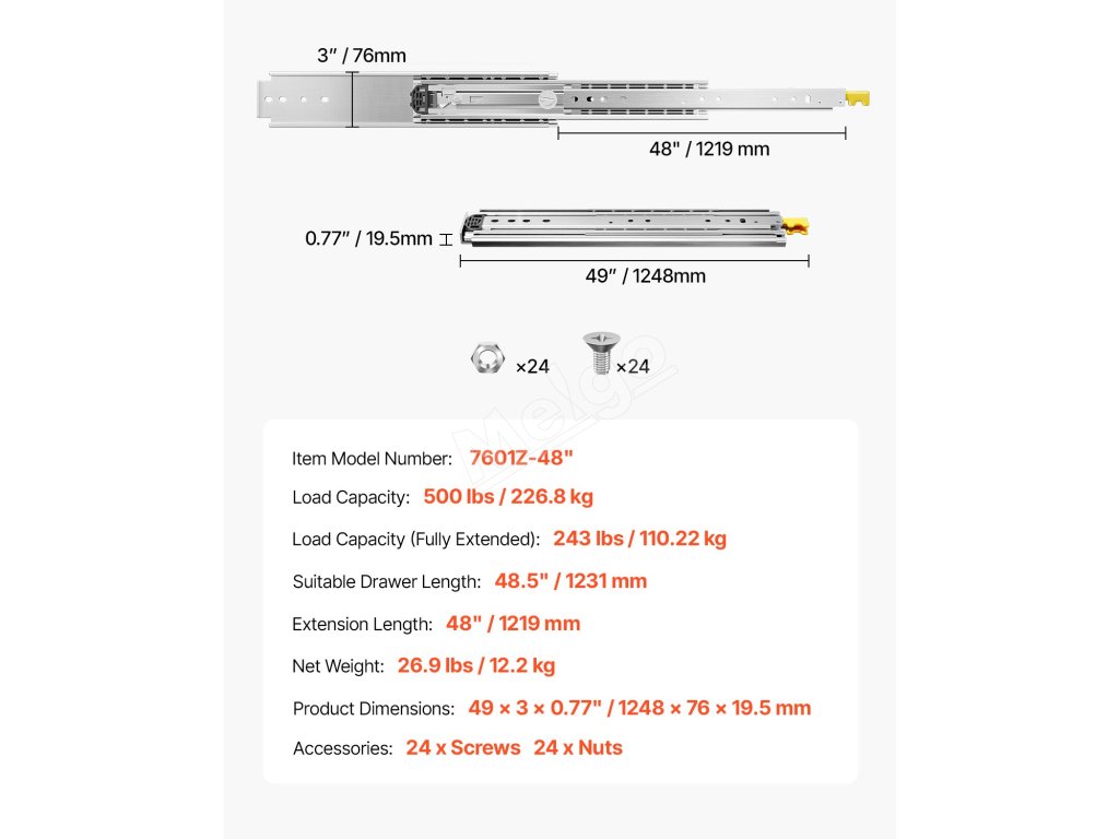 | Dĺžka výsuvu | 48" / 1219 mm |