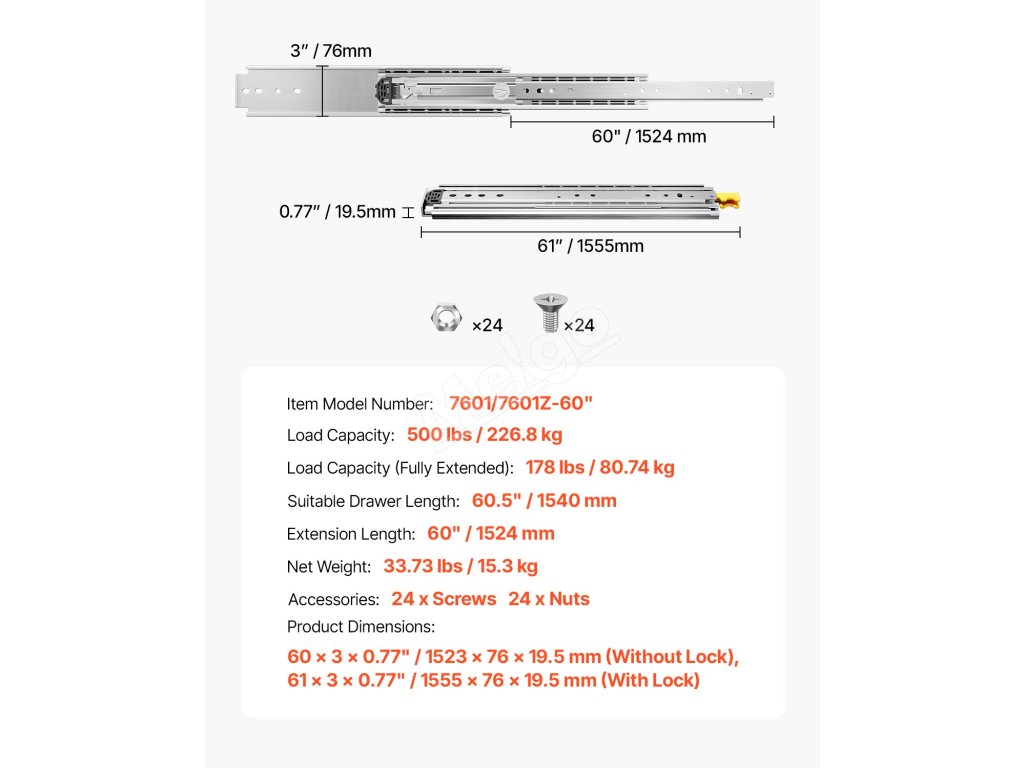| Dĺžka výsuvu | 60" / 1524 mm |