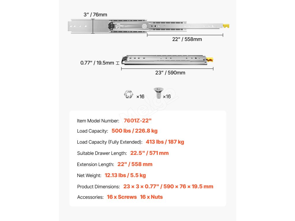 Tieto zásuvkové koľajnice vyrobené z vysokokvalitnej ocele majú vysokú tvrdosť, veľkú stabilitu a odolnosť. Fungujú so správnym uložením a nízkou hlučnosťou. Dodávajú sa s podrobnými vodidlami a praktickými skrutkami. Je ideálna na skladovanie v skrinkách, priemyselných zásuvkách, komerčnom vybavení, upravených vozidlách atď.