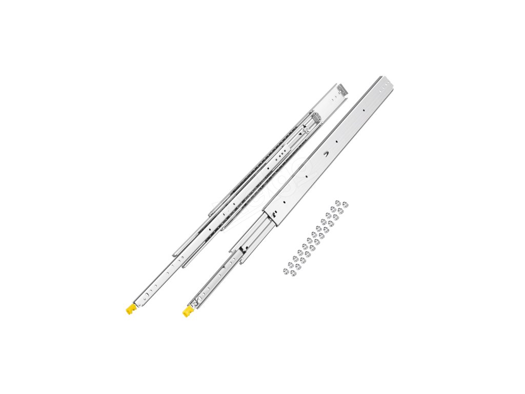 Tieto zásuvkové koľajnice vyrobené z vysokokvalitnej ocele majú vysokú tvrdosť, veľkú stabilitu a odolnosť. Fungujú so správnym uložením a nízkou hlučnosťou. Dodávajú sa s podrobnými vodidlami a praktickými skrutkami. Je ideálna na skladovanie v skrinkách, priemyselných zásuvkách, komerčnom vybavení, upravených vozidlách atď.