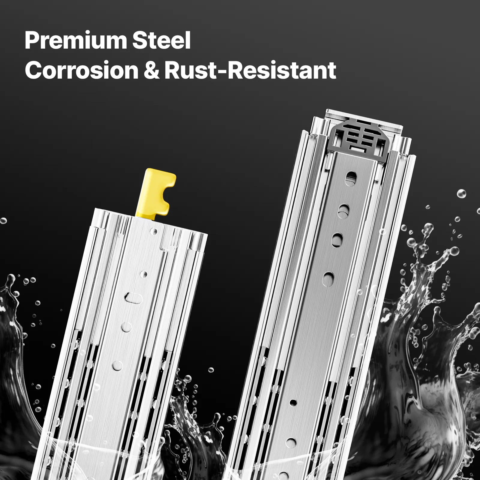 Vďaka nosnosti 500 libier je tento zásuvkový výsuv vyrobený z vysokokvalitnej ocele, je odolný voči korózii a korózii a je skonštruovaný tak, aby vydržal, čím spĺňa všetky vaše potreby týkajúce sa nosnosti.