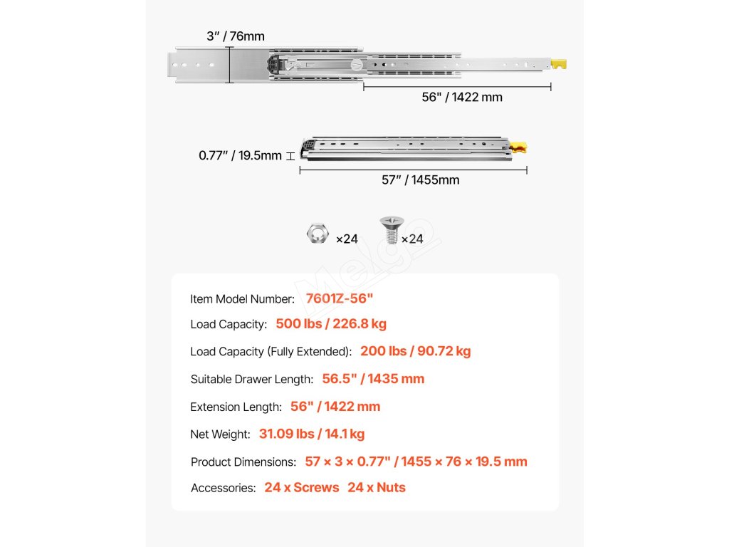 | Dĺžka výsuvu | 56" / 1422 mm |