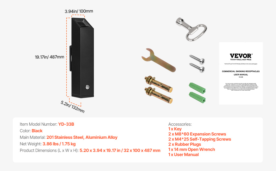 Táto nádoba na cigaretové ohorky je vyrobená z vysokokvalitnej nehrdzavejúcej ocele, je odolná voči korózii a navrhnutá na dlhodobé používanie, takže ponúka spoľahlivé riešenie na likvidáciu cigariet, ktoré vydrží.