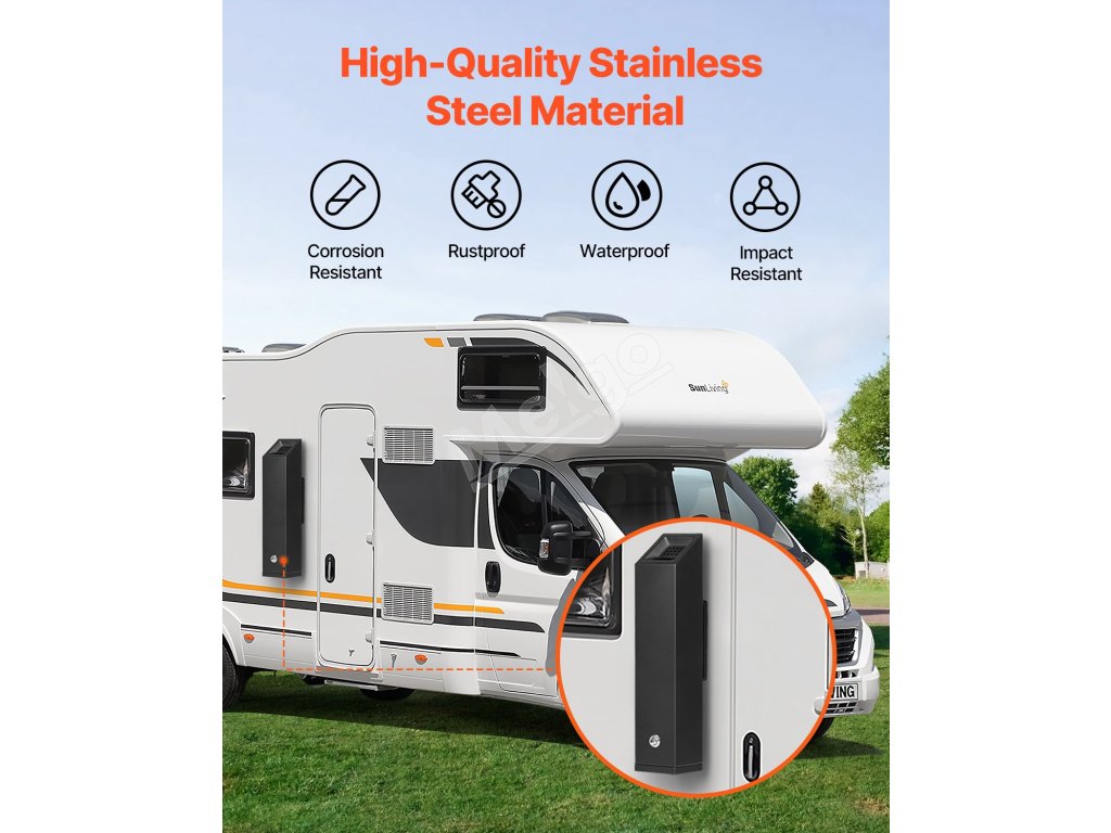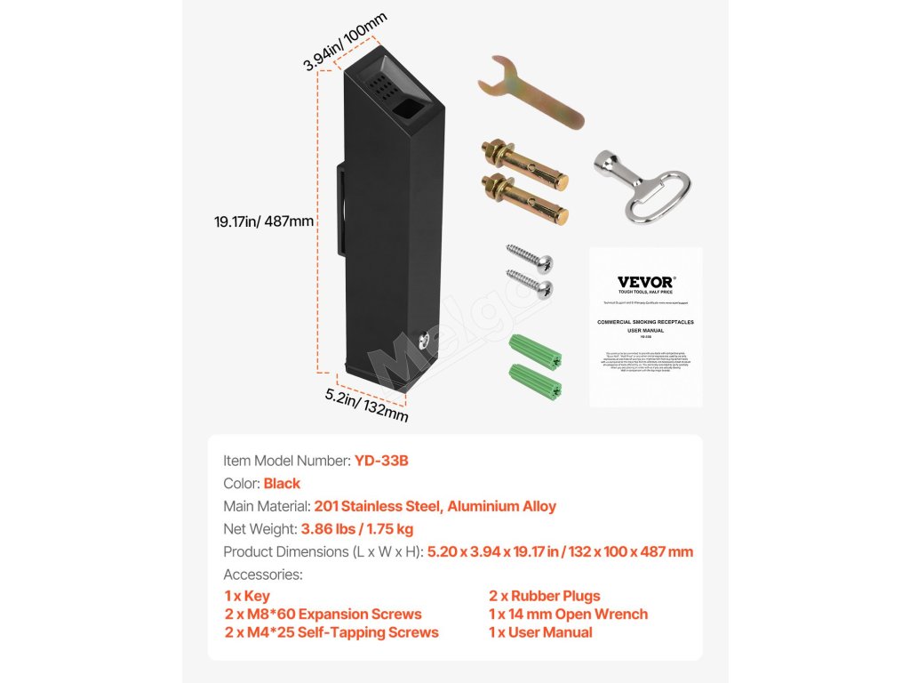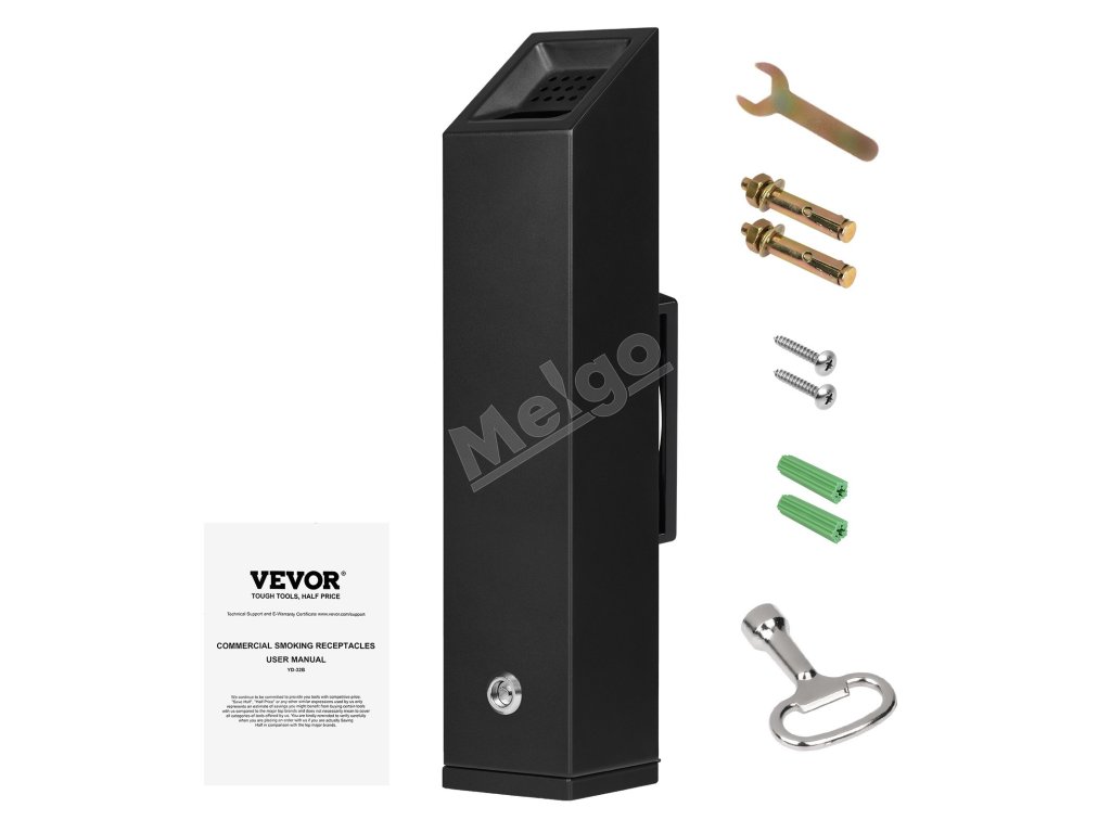 Nádoba na cigaretové ohorky je v spodnej časti vybavená bezpečnostným zámkom s kľúčom, ktorý zabraňuje krádeži alebo strate, čím zvyšuje bezpečnosť a pokoj.