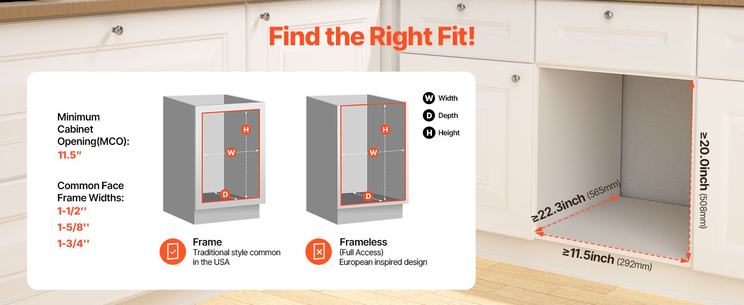Pred inštaláciou sa uistite, že vaša skrinka je rámová alebo bezrámová. Po potvrdení štýlu zmerajte rozmery. Odporúčaná veľkosť skrinky: Hĺbka: ≥ 565 mm/22 palcov; šírka: ≥ 292 mm/11 palcov; vertikálna výška: ≥ 508 mm/20 palcov.