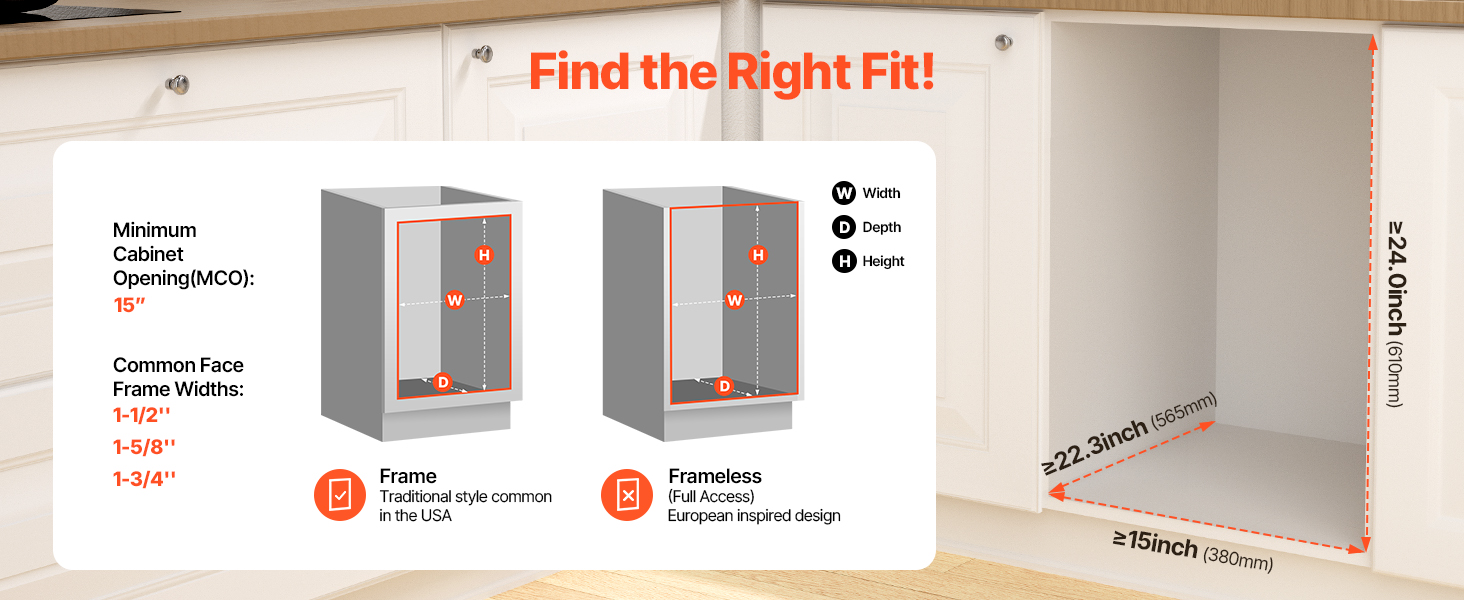 Pred inštaláciou sa uistite, že vaša skrinka je rámová alebo bezrámová. Po potvrdení štýlu zmerajte rozmery. Odporúčaná veľkosť skrinky: Hĺbka: ≥ 565 mm/22 palcov; šírka: ≥ 380 mm/15 palcov; vertikálna výška: ≥ 610 mm/24 palcov.