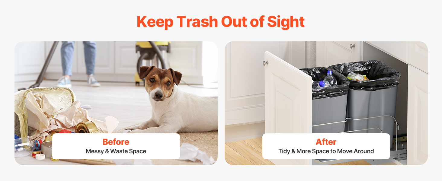 Kedykoľvek potrebujete vyhodiť odpadky, jednoducho vytiahnite kôš zo základnej skrinky. Ušetríte tak miesto na podlahe a vaša kuchyňa bude čistejšia a usporiadanejšia. Účinne zabraňuje deťom alebo domácim zvieratám, aby ho náhodne prevrátili, čím sa zachováva čistota.
