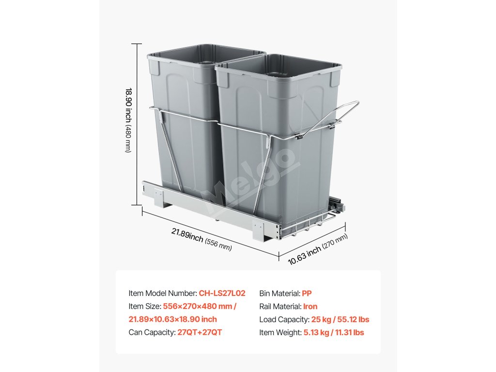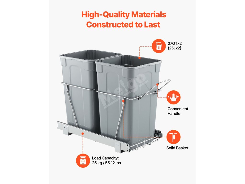 veľká kapacita 27QT+27QT na maximalizáciu priestoru v kuchyni. Odpadkový kôš pod kuchynskú linku pojme až 25 kg odpadu.