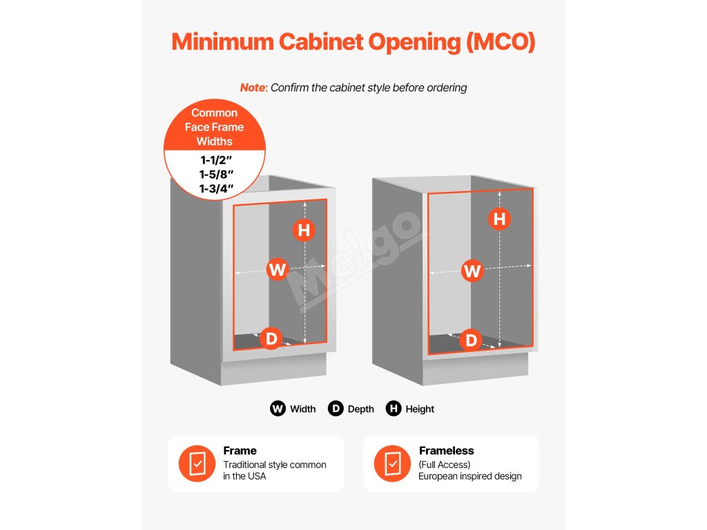 Pred inštaláciou sa uistite, že vaša skrinka je rámová alebo bezrámová. Po potvrdení štýlu zmerajte rozmery. Odporúčané rozmery skrinky: Hĺbka (vpredu a vzadu): ≥565 mm / ≥22,2 palca; šírka (vpravo a vľavo): ≥292 mm / ≥11,5 palca; vertikálna výška (hore a dole): ≥500 mm / ≥20 palcov.