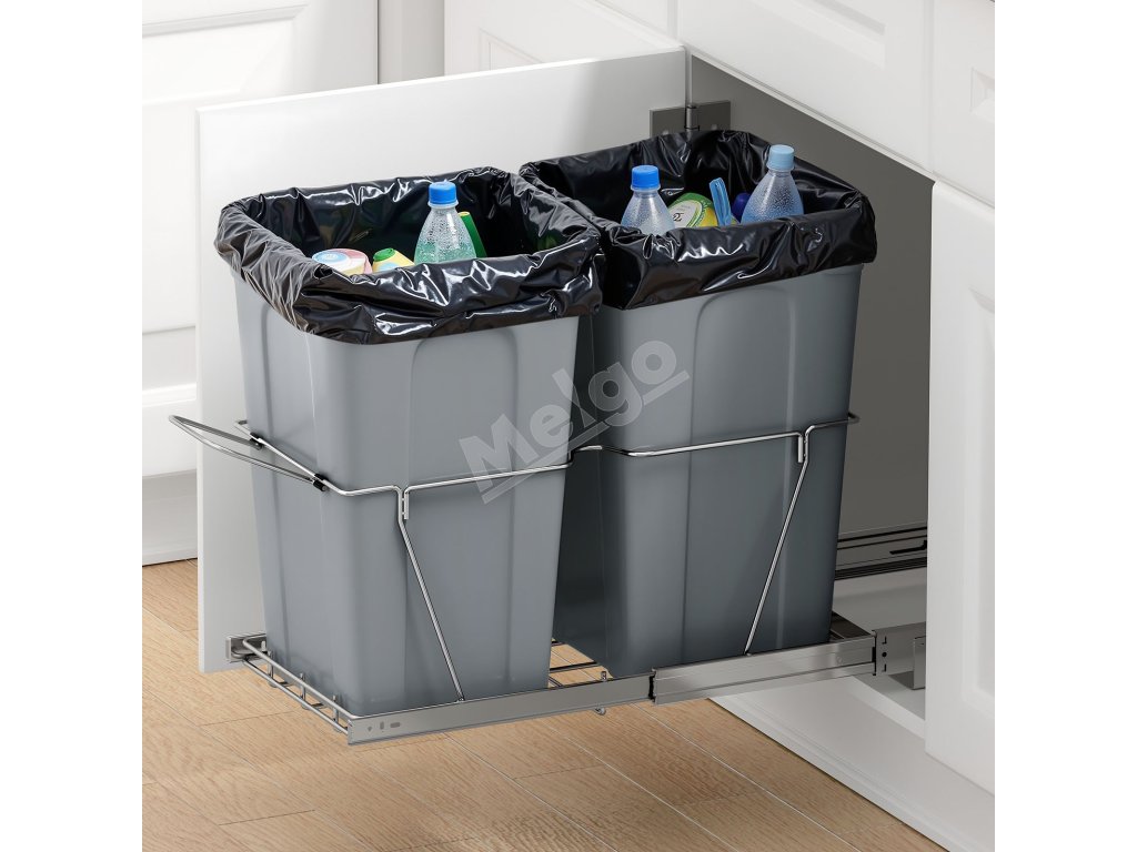 Výsuvný 2-komorový odpadkový kôš pod drez s plným kovovým výsuvom