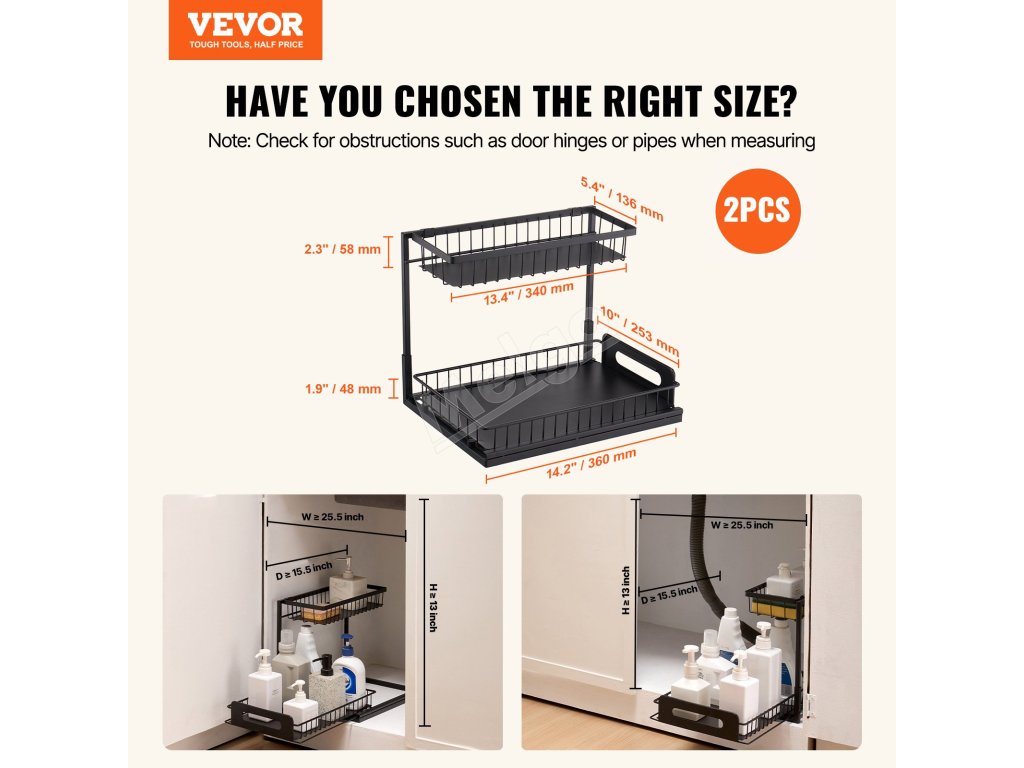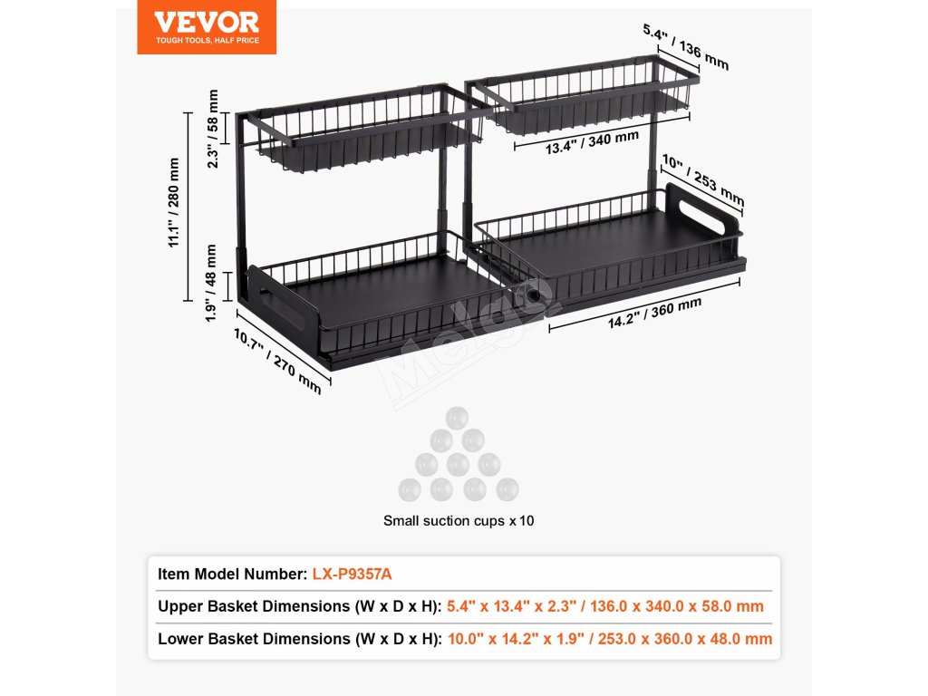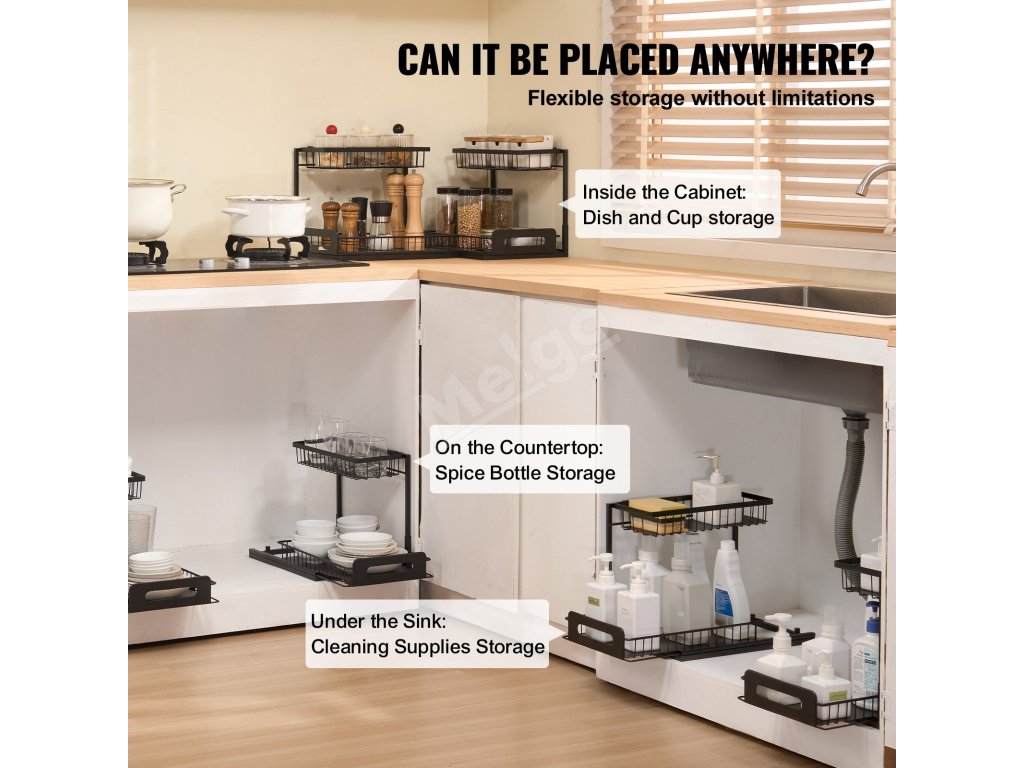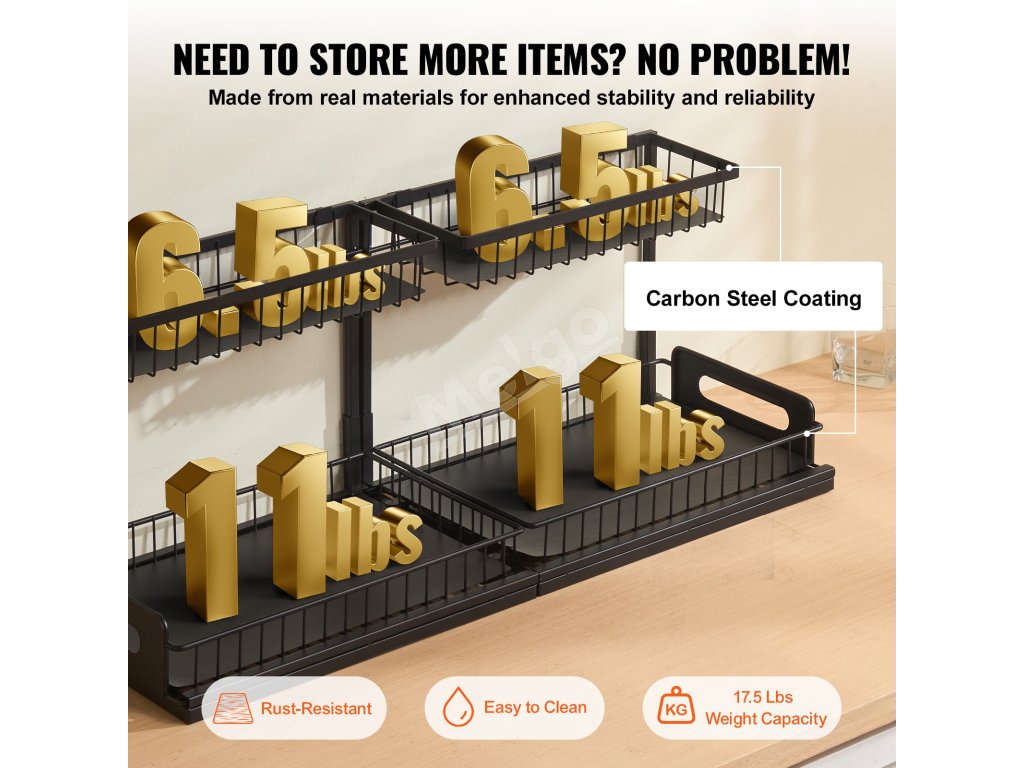 Výsuvný dvojposchodový organizér do skrinky 25.5"×15.5"×13" 2 ks