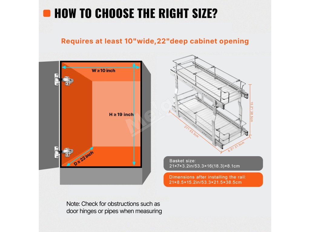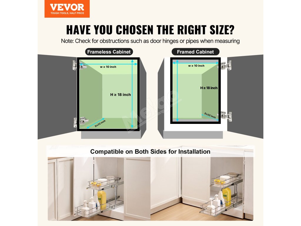 V závislosti od konfigurácie skrinky alebo potrieb používania je možné inštaláciu vykonať na ľavej alebo pravej strane. Výsuvnú policu do skrinky možno ľahko zmontovať len v 4 krokoch podľa presných pokynov na montáž rozmerov, čím sa zabezpečí jednorazová inštalácia a ušetrí sa cenný čas.