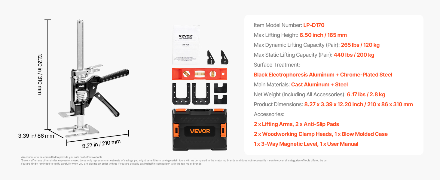 Tento ramenný zdvihák je snom každého multifunkčného pracovníka. Či už potrebujete inštalovať dvere a okná, montovať skrine, položiť podlahu, postaviť verandy, opraviť paluby alebo postaviť rámy, vyniká vo všetkých aspektoch renovácie domu. Podá vám pomocnú ruku od malých opráv až po veľké inštalačné projekty.