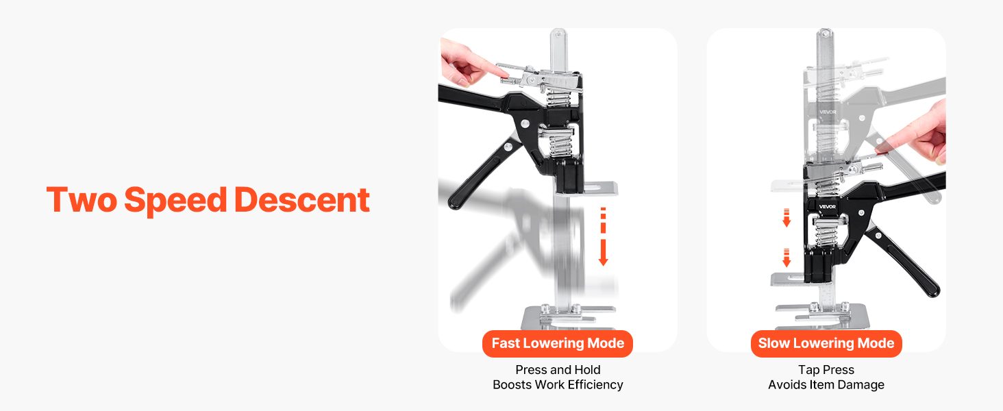 Rozlúčte sa s bojom pri zdvíhaní ťažkých vecí! Náš zdvihák na nábytok je užívateľsky prívetivý. Stačí stlačiť rukoväť na rýchle zdvihnutie ťažkých vecí alebo poklepaním na dosku na ich jemné spustenie. Je to hračka pre každého bez ohľadu na pohlavie. Navyše je ľahký a prenosný. A pohodlná rukoväť znižuje únavu.