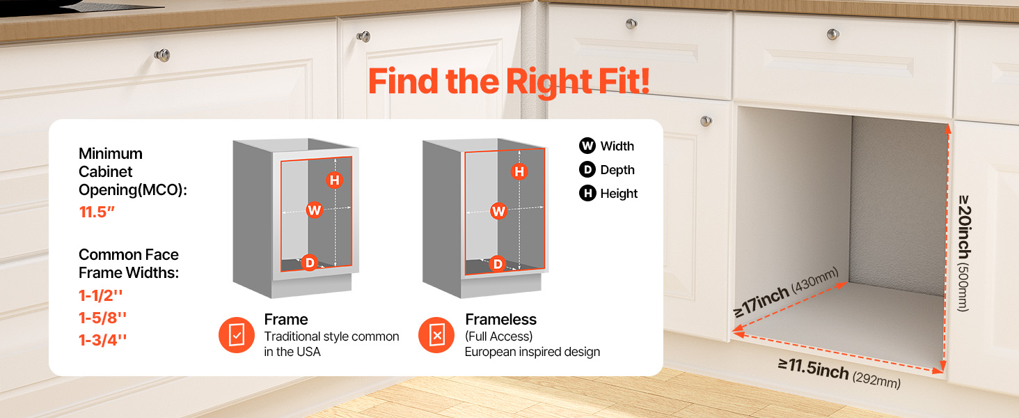 Pred inštaláciou sa uistite, či je vaša skrinka rámová alebo bezrámová. Po potvrdení štýlu zmerajte rozmery. Odporúčaná veľkosť skrinky: Hĺbka (predná a zadná strana): ≥430 mm / ≥17 palcov; Šírka (pravá a ľavá strana): ≥292 mm / ≥11,5 palca; Vertikálna výška (hore a dole): ≥500 mm / ≥20 palcov.