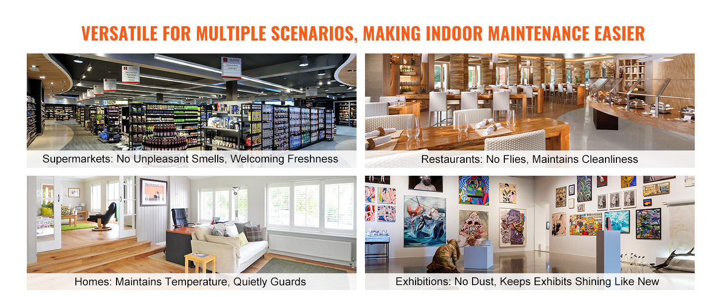 Od vítania zákazníkov v supermarketoch, zabezpečenia pokojnej atmosféry v reštauráciách, udržiavania vnútorného komfortu v domácnosti až po udržiavanie výstavných expozícií bez škvŕn - naša vzduchová clona je vaším profesionálnym strážcom pri viacerých príležitostiach. Čistota sa začína tu.