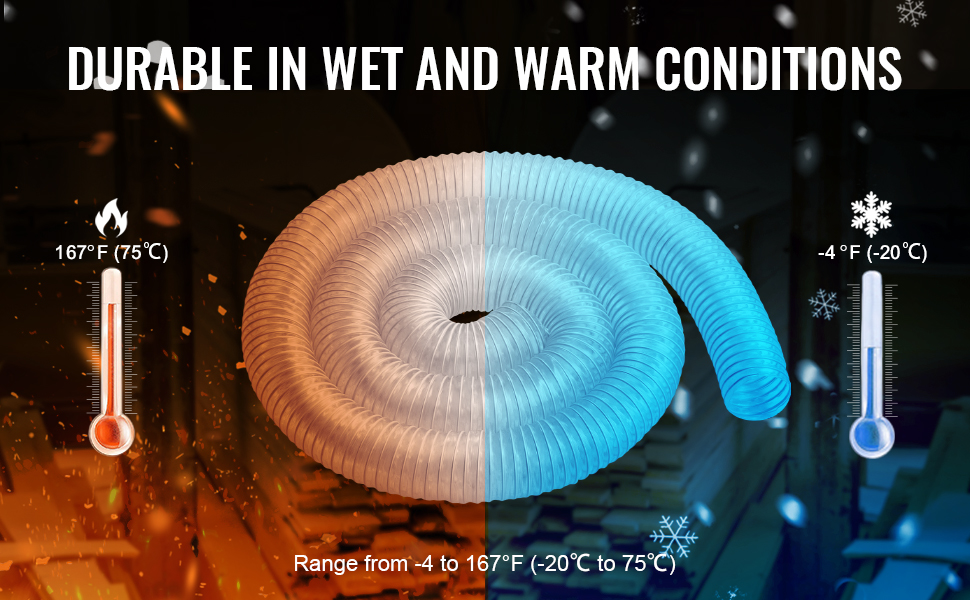 Hadica na zachytávanie prachu zostáva pružná a pri extrémne nízkych teplotách nekrehne ani nepraská, vďaka čomu je vhodná pre rôzne priemyselné a aplikačné scenáre, ako sú napríklad výrobné a stavebné prevádzky, ktoré majú rôzne teplotné požiadavky.