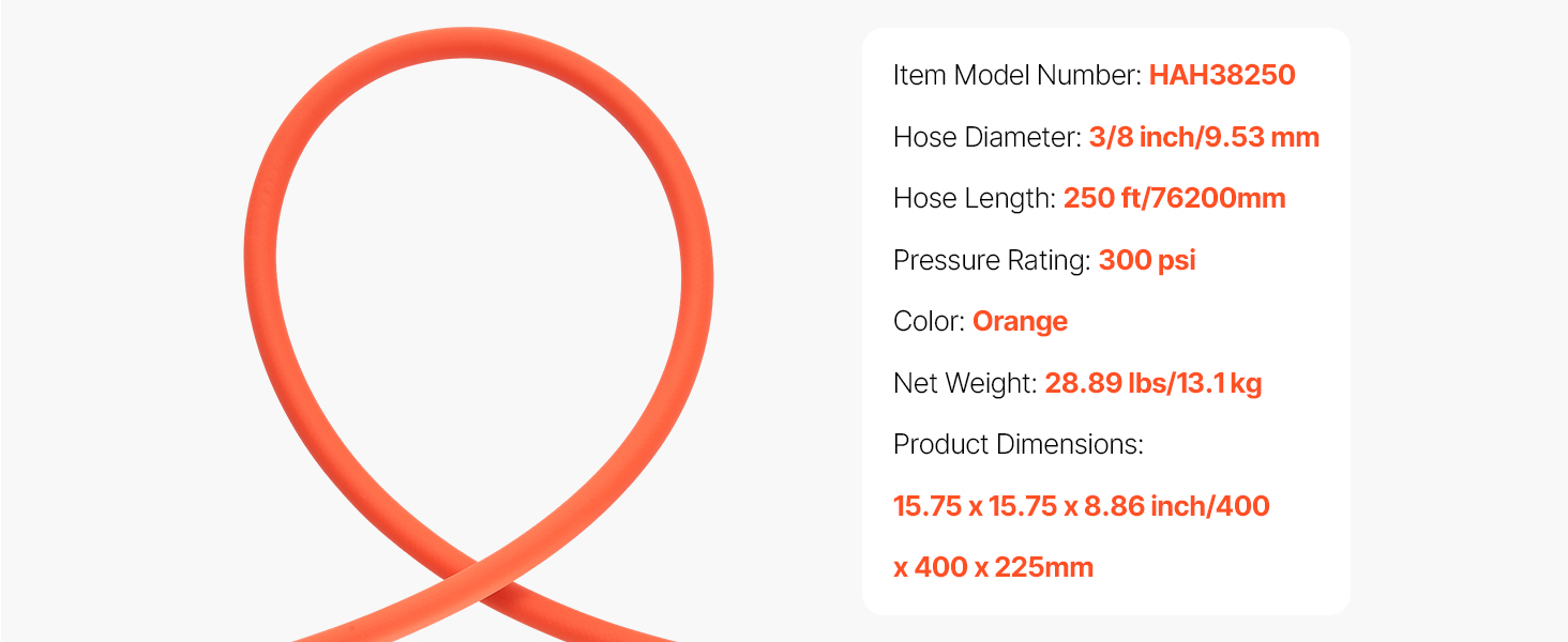 Naša prémiová hybridná vzduchová hadica je vhodná na priemyselné, dodávateľské alebo domáce použitie. Má maximálny pracovný tlak 300 PSI a rozsah prevádzkových teplôt -40 až 140 °F/-40 až 60 °C, kompatibilný s bežnými kompresormi a pneumatickým náradím.