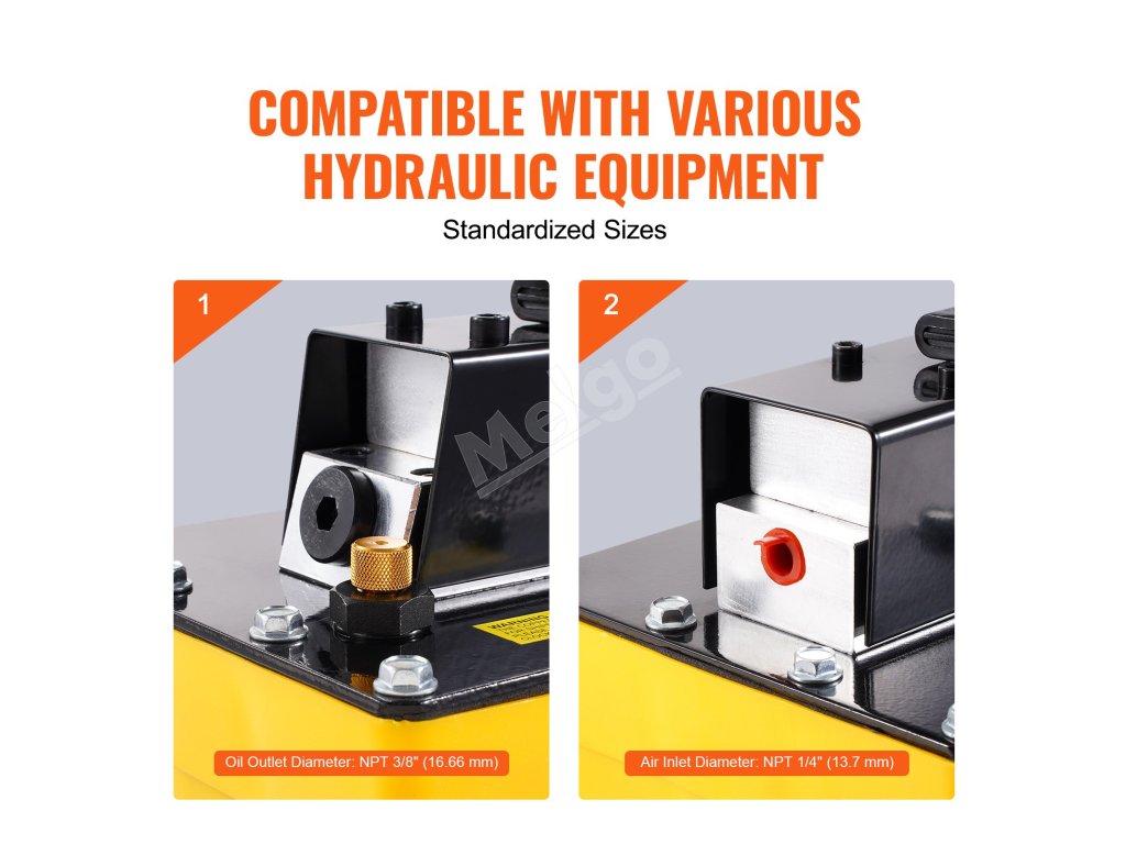 Vďaka dvom otvorom na upevňovacie skrutky v spodnej časti môžete toto hydraulické vzduchové čerpadlo zabezpečiť na stabilné používanie bez vibrácií. Ide o to, aby vaše operácie boli stabilné a efektívne.