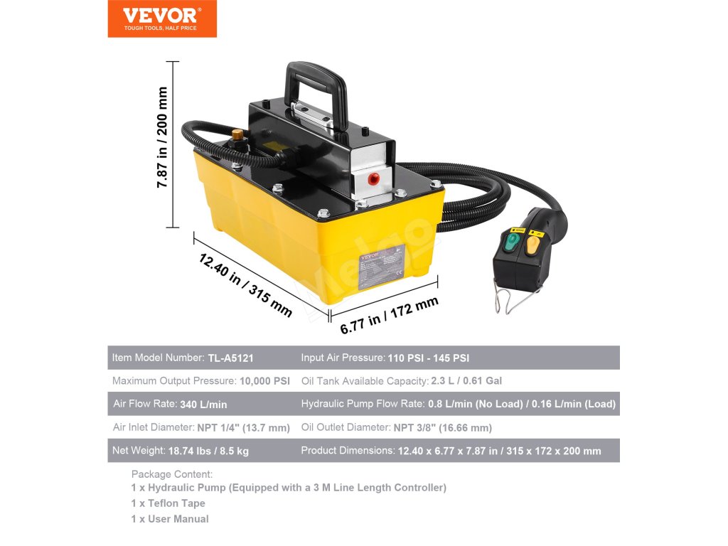 Získajte spoľahlivý výkon s naším vzduchovým hydraulickým čerpadlom 10 000 PSI. Je odolné, má pevný plášť, pohon na diaľkové ovládanie a z výroby je naplnené hydraulickým olejom (č. 13), vyznačuje sa jednoduchým ovládaním, základňou odolnou proti nárazom a rýchlym nastavením. Je pripravené na náročné práce, je efektívne a skonštruované tak, aby vydržalo.