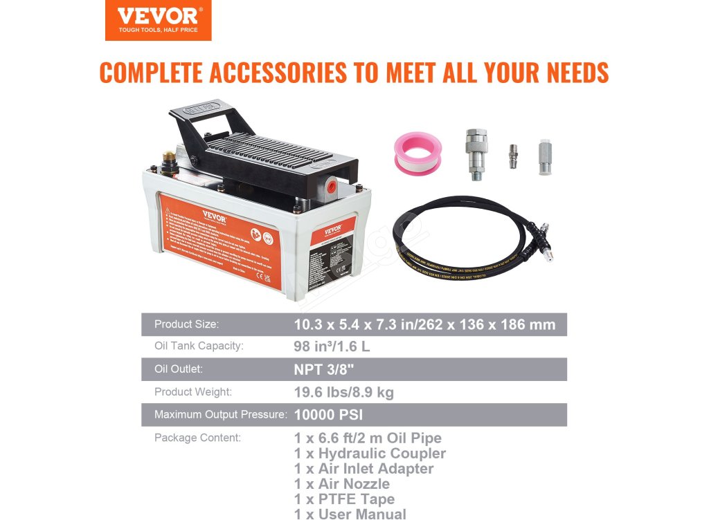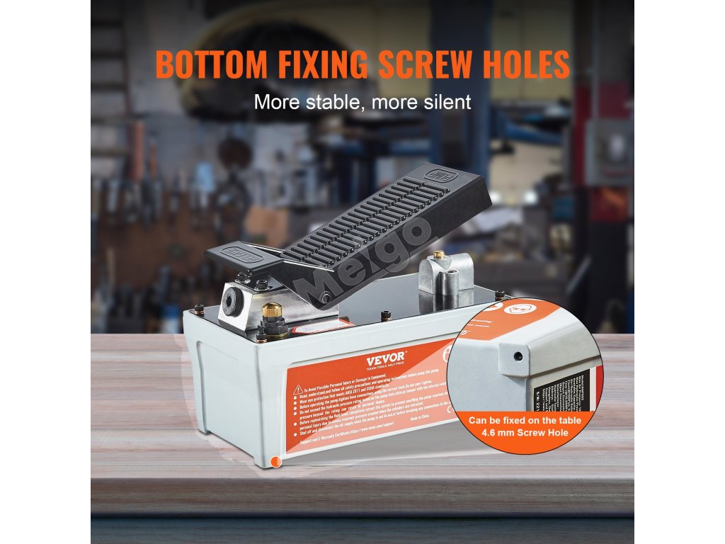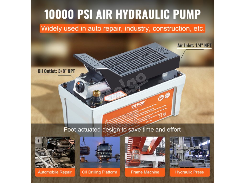 Toto vzduchové hydraulické čerpadlo od spoločnosti VEVOR poskytuje výkon hydraulického čerpadla 10 000 PSI. Zaručuje spoľahlivý výkon pri rôznych úlohách. Vyniká od prác s hydraulickým čerpadlom na karosérii automobilu až po náročné aplikácie. Vďaka vysokému výstupnému tlaku ľahko zvláda náročné úlohy. Vďaka tomu je ideálne pre profesionálov v automobilovom a priemyselnom priemysle. Robustná konštrukcia nášho čerpadla zaručuje dlhú životnosť. Môžete sa naň spoľahnúť pri každodennom používaní. Preto je vďaka tomuto silnému výkonu spoľahlivým nástrojom na každodenné používanie, pretože je vyrobené na zvládanie náročných podmienok. Môžete sa teda spoľahnúť na jeho silný výkon aj vtedy, keď potrebujete vysokotlakové riešenia. Vďaka jeho konzistentnému výkonu budete mať vždy spoľahlivé výsledky. Preto ho vrelo odporúčame. Vaša kúpa bude vynikajúcim doplnkom každej dielne. Vysoký stupeň PSI zaručuje všestrannosť a účinnosť pri rôznych úlohách!